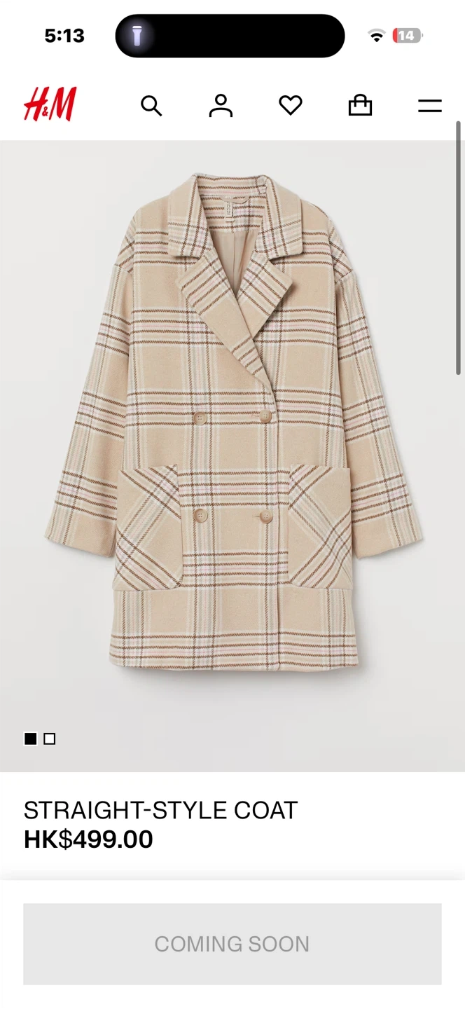 Selling a cute H&M straight-style coat in a plaid pattern! It's perfect for layering and adding a touch of style to any outfit. The coat features a double-breasted design and two front pockets. It's in great condition and ready for a new home!