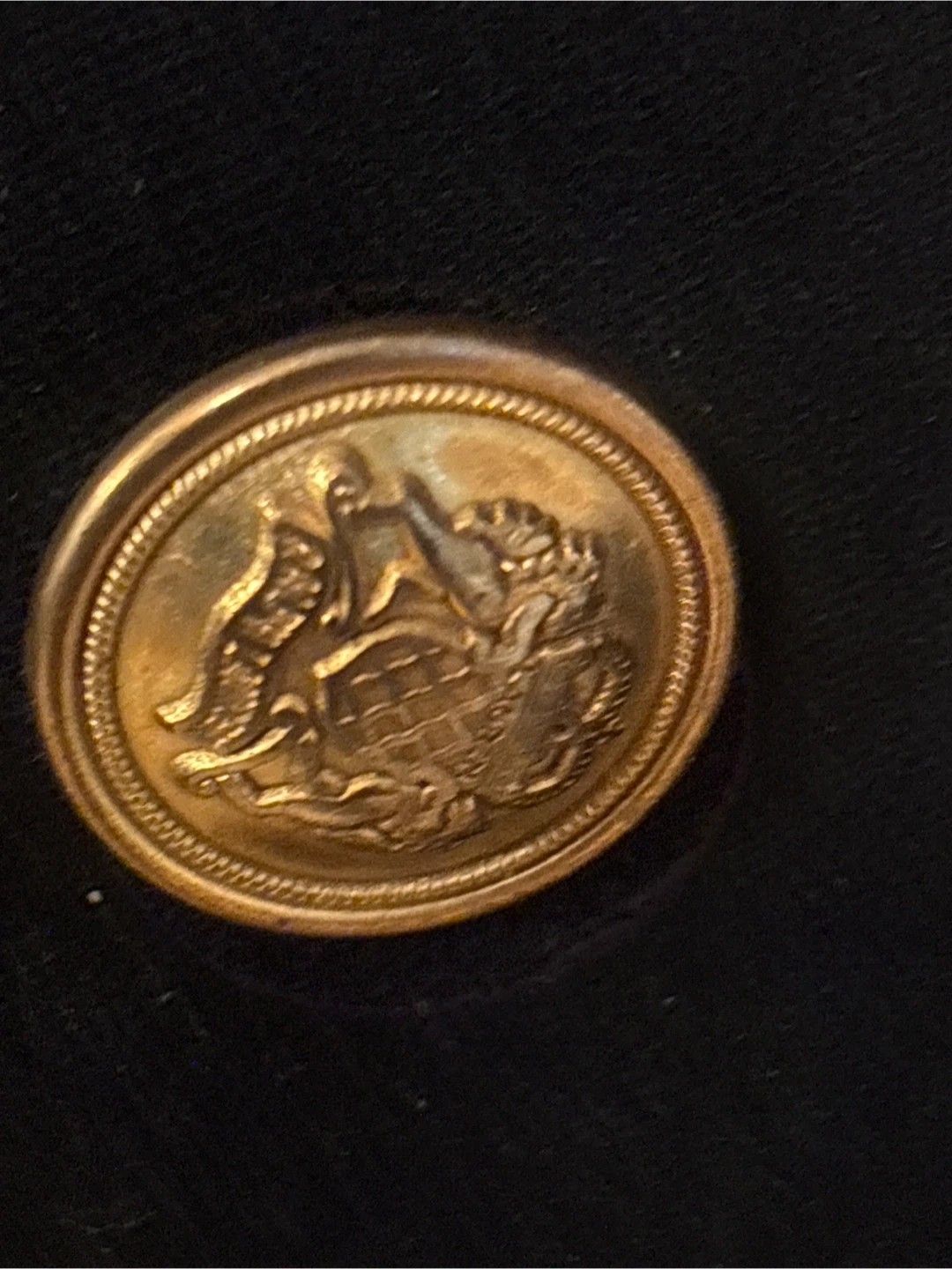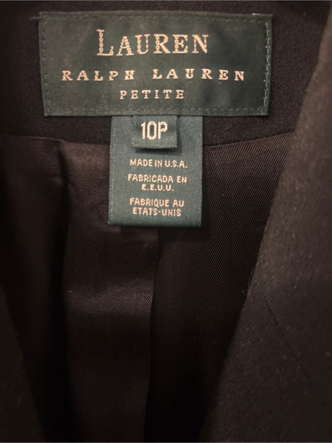 Selling a Ralph Lauren Petite blazer in size 10P. It's a stylish dark blue blazer with a double-breasted design and gold-colored buttons. The blazer also features a decorative RL emblem on the pocket. Perfect for adding a touch of class to any outfit!