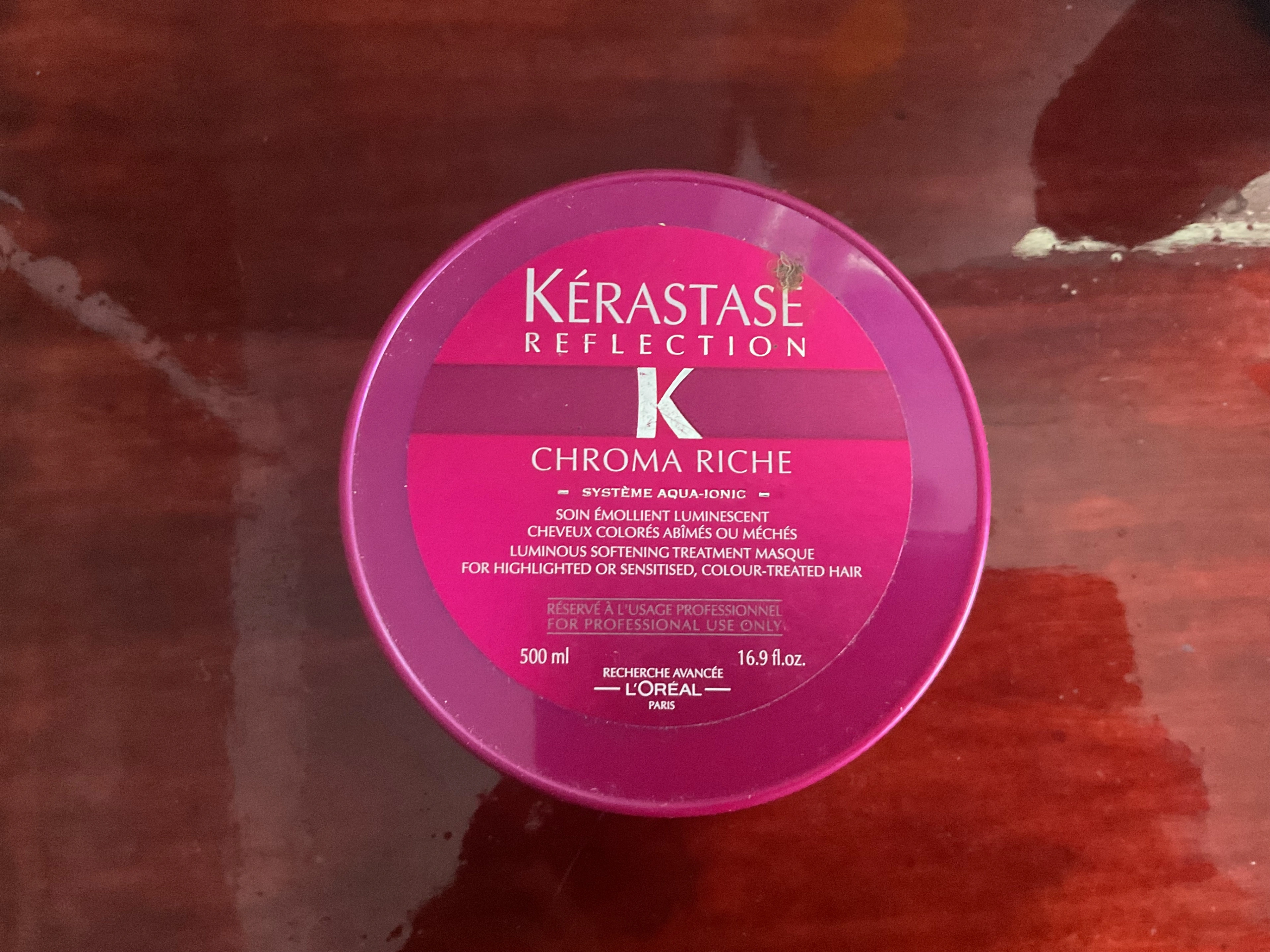 Selling a Kérastase Reflection Chroma Riche luminous softening treatment masque for highlighted or sensitized, color-treated hair. It contains 500 ml / 16.9 fl.oz. Great for professional use!