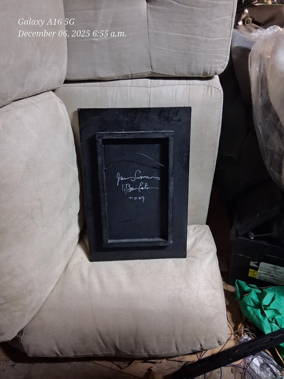 Unique framed art print signed by Jan Simmons in 2007. The print features a distinctive design with figures in black against an orange background. Perfect for adding a touch of artistic flair to your space!
