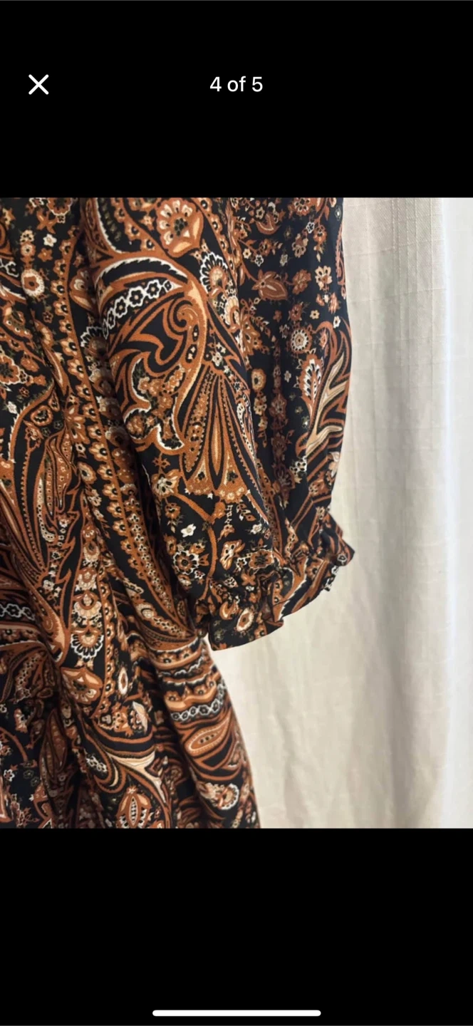 Black Tape boho dress features a beautiful paisley print in shades of brown and black. It's a size medium and in great condition. The dress has a flattering silhouette and would be a lovely addition to your wardrobe!