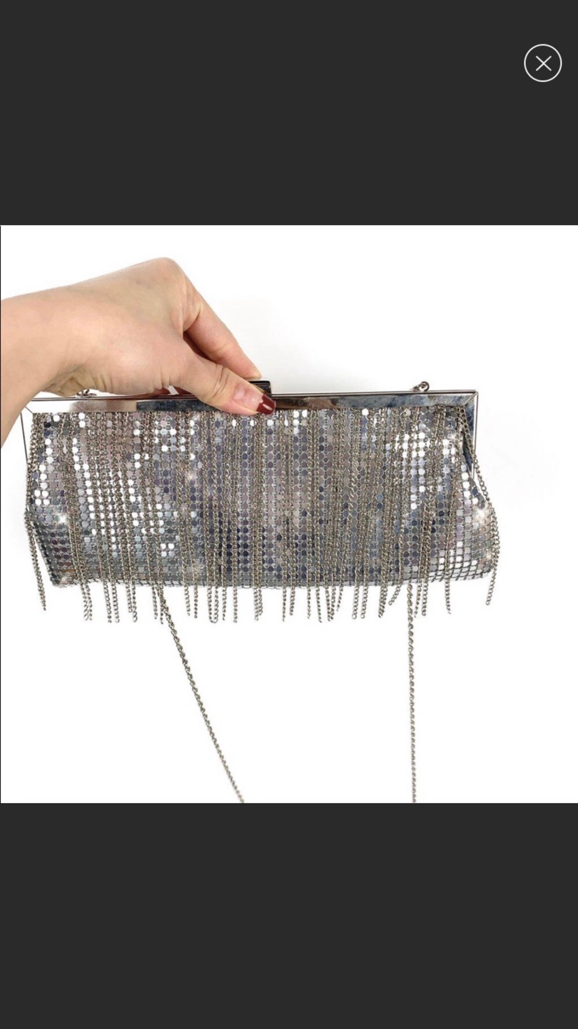 Like New Silver mesh clutch/crossbody purse with fringe