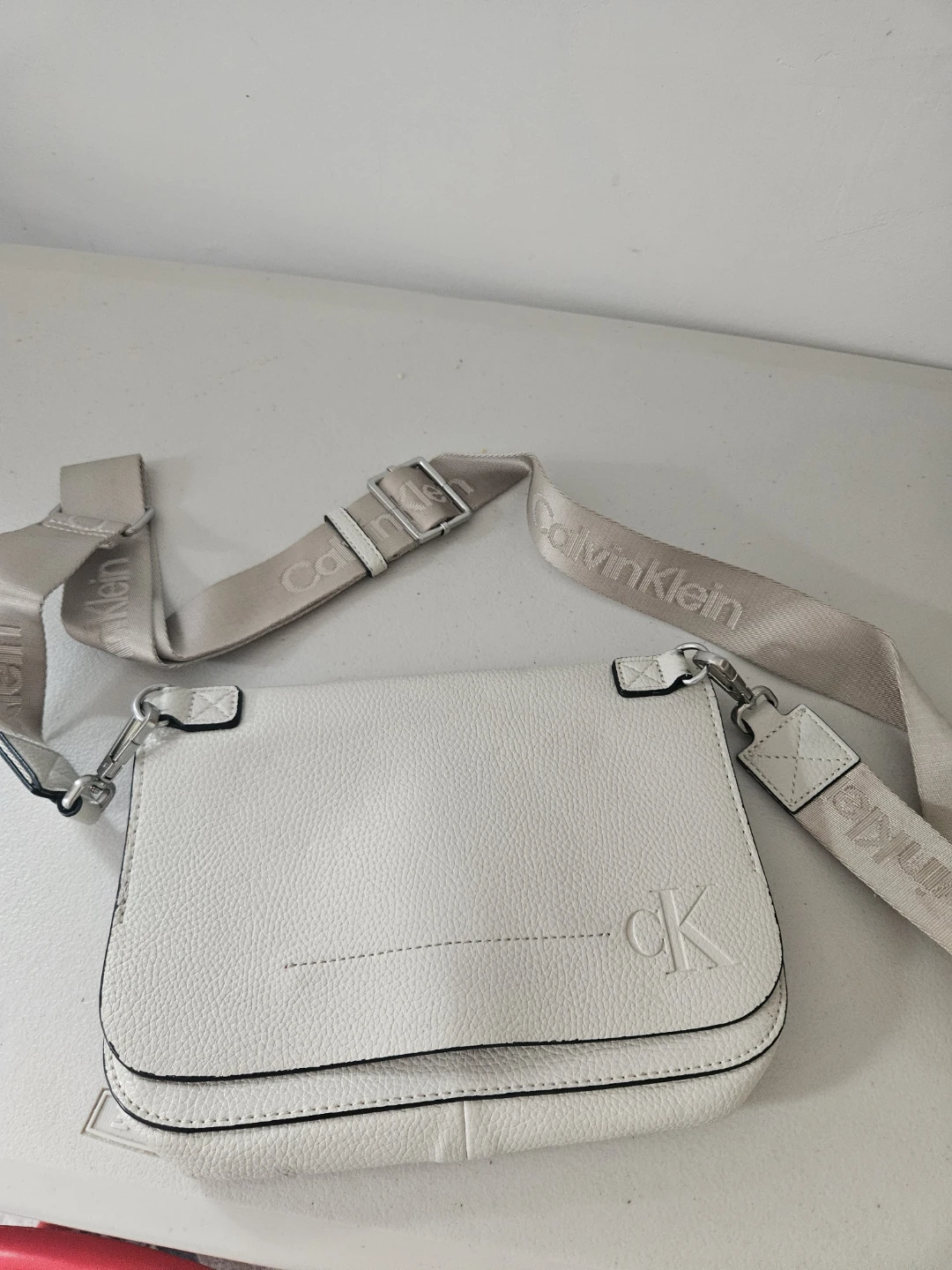 Selling a Calvin Klein crossbody bag in white. It features the CK logo and has a Calvin Klein branded strap. Great for everyday use!