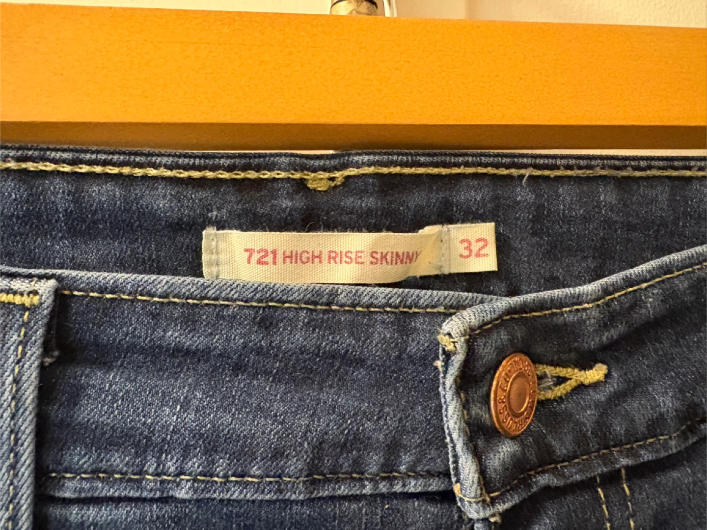 Selling a pair of Levi's 721 High Rise Skinny jeans in size 32. They're in great condition and ready for a new home. I lost weight!