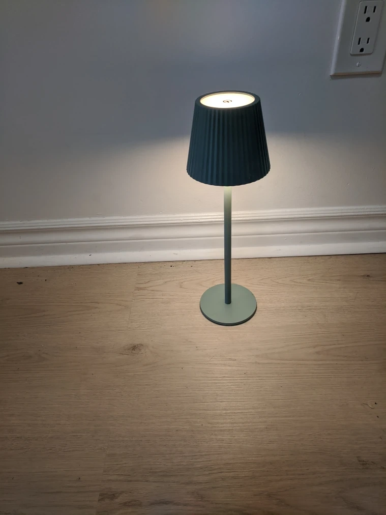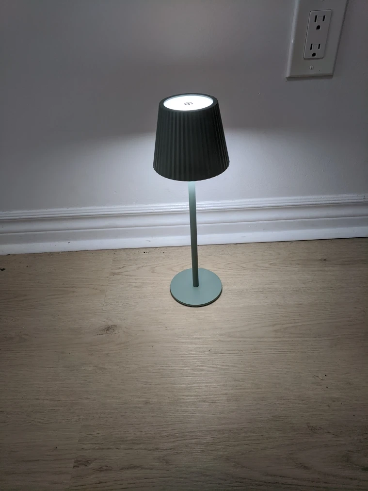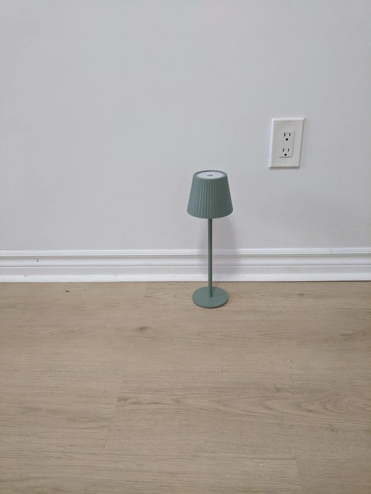 Selling a Flos Bon Jour Unplugged table lamp in sage green. It's in great condition and provides a lovely ambient light. Perfect for a bedside table or desk!