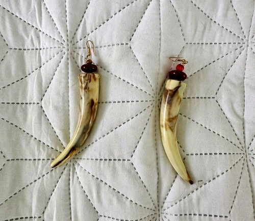 Boho Tusk Dangle Earrings - Gold Tone
