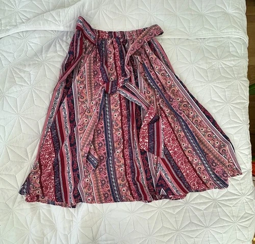 Boho Floral Stripe Midi Skirt Women’s Size Medium