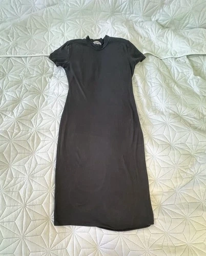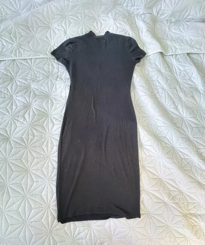 Black Mock Neck Bodycon Midi Dress 90s Minimalist