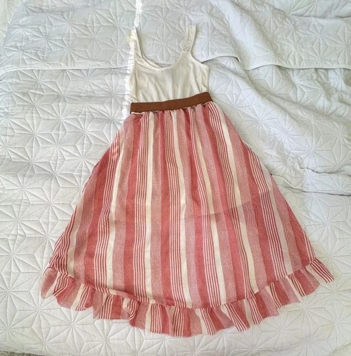 Striped Ruffle-Hem Sundress – Pink & Cream, Size M