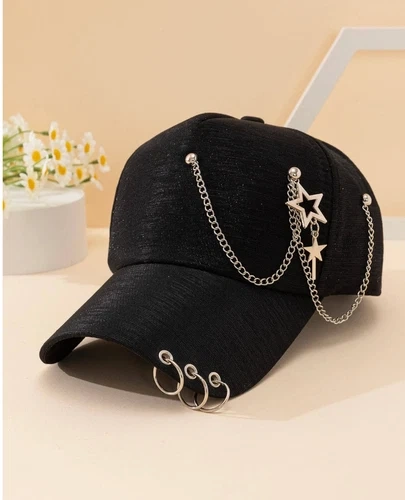 Black Grunge Pierced Baseball Cap Chain Star Charm