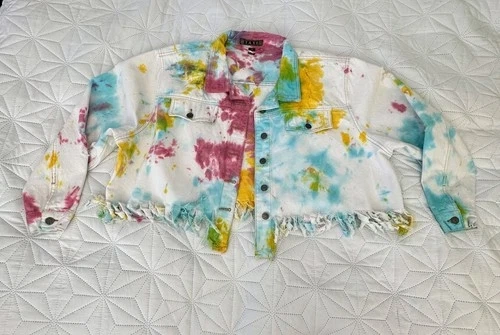 Tie-Dye Cropped Denim Jacket – Frayed Hem Size 2X