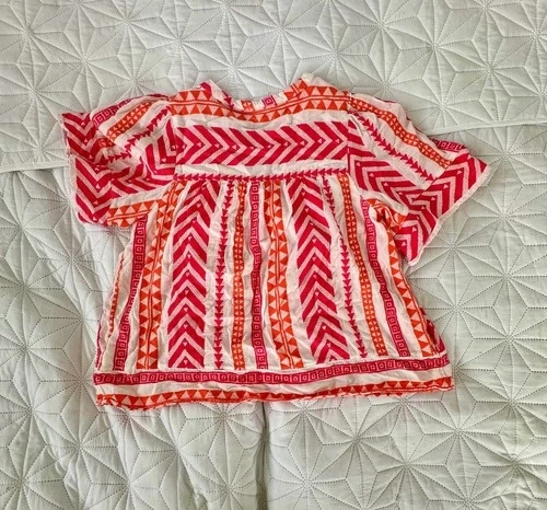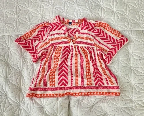 Old Navy Boho Peasant Top Large Pink Orange Geometric