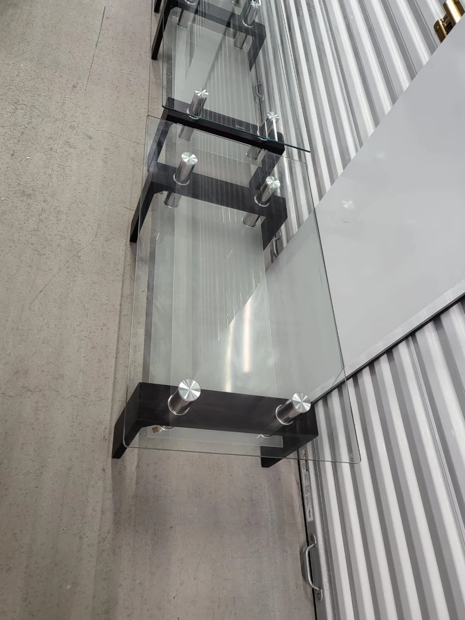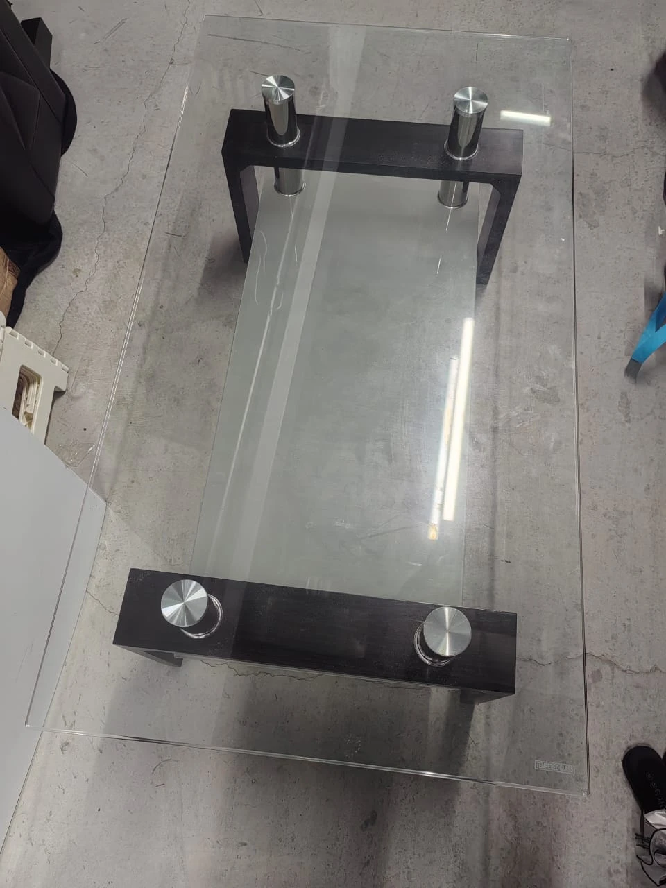 Selling a glass coffee table with a stylish black wood frame. It's in good condition and would look great in any living room! There are some minor scratches on the glass surface.