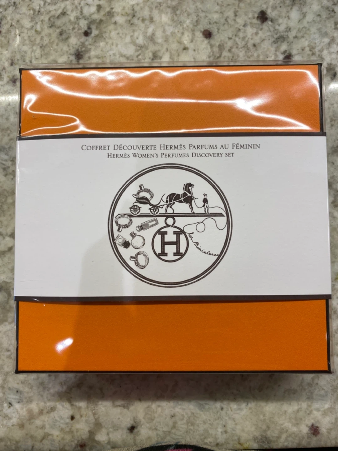Selling a brand new Hermès Women's Perfumes Discovery Set! This set contains four deluxe replicas of Hermès fragrances. It's a great way to sample some of their popular scents. The set includes: