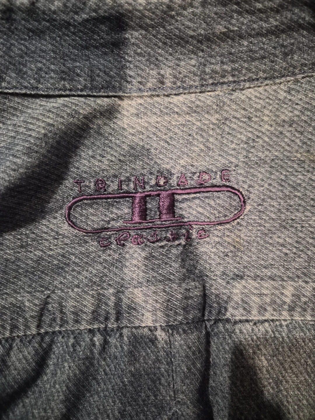 Here's a long-sleeved denim button-up shirt! It's in great condition and ready for a new wardrobe