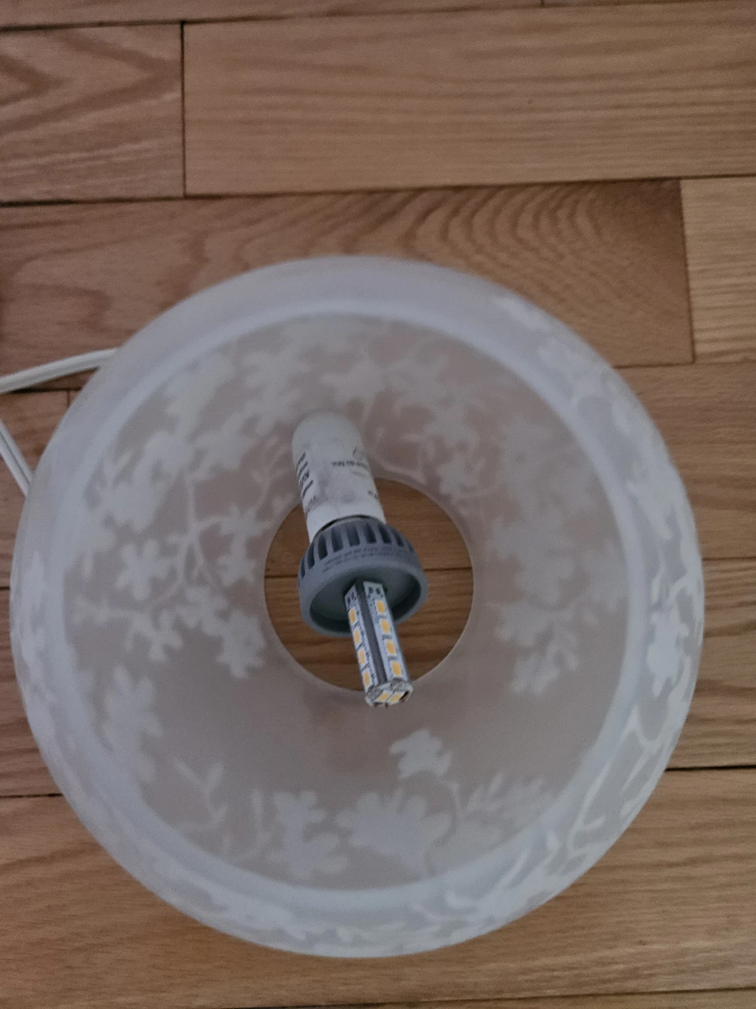 Here's a lovely table lamp from Ikea with a floral patterned glass shade! It's in great condition and would be a beautiful addition to any room. Works great