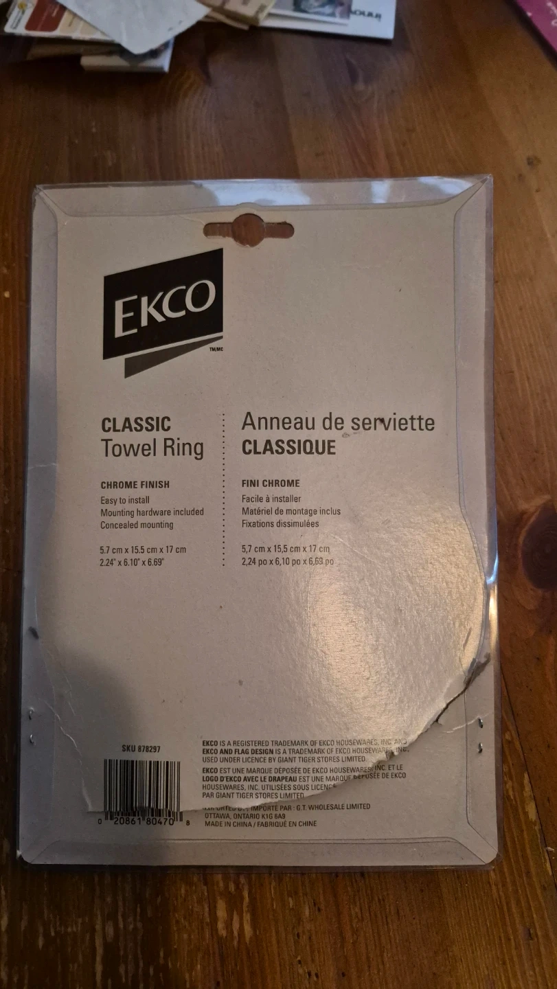 Selling a brand new EKCO Classic Towel Ring! It has a chrome finish and includes mounting hardware for concealed mounting. #cleanout