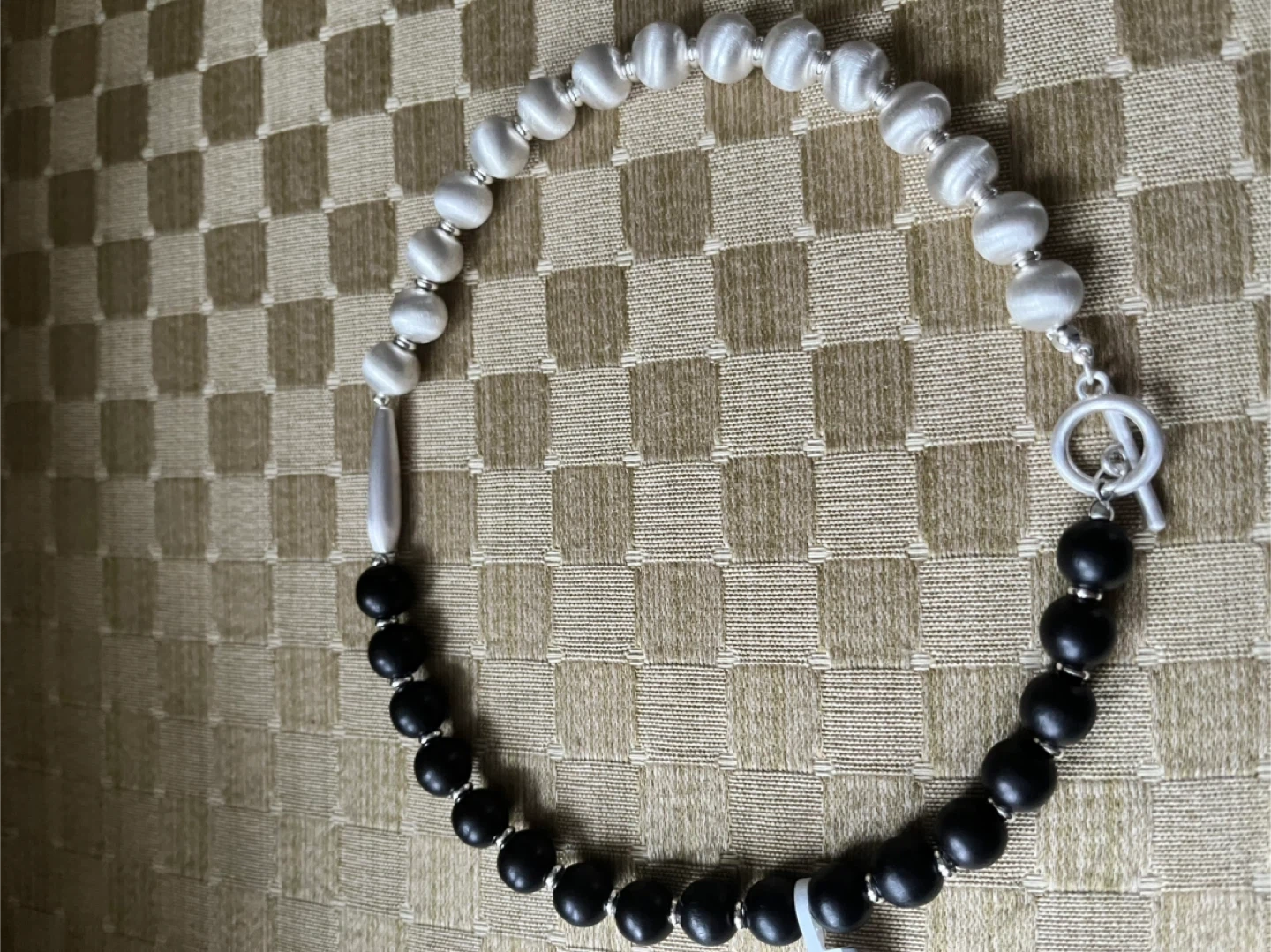 Selling a Burchie Vintage necklace in black and silver. It comes with its original box!