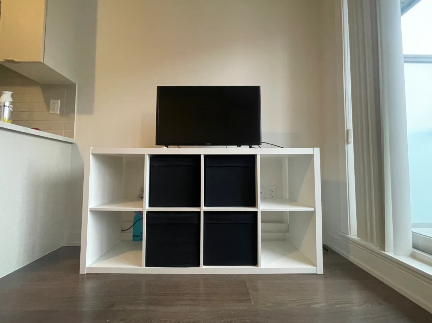 Selling a sofa and a white shelf, both in good condition. They're perfect for adding some extra storage and seating to your place! Also ikea desk and chair.
