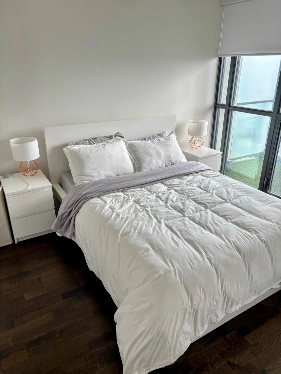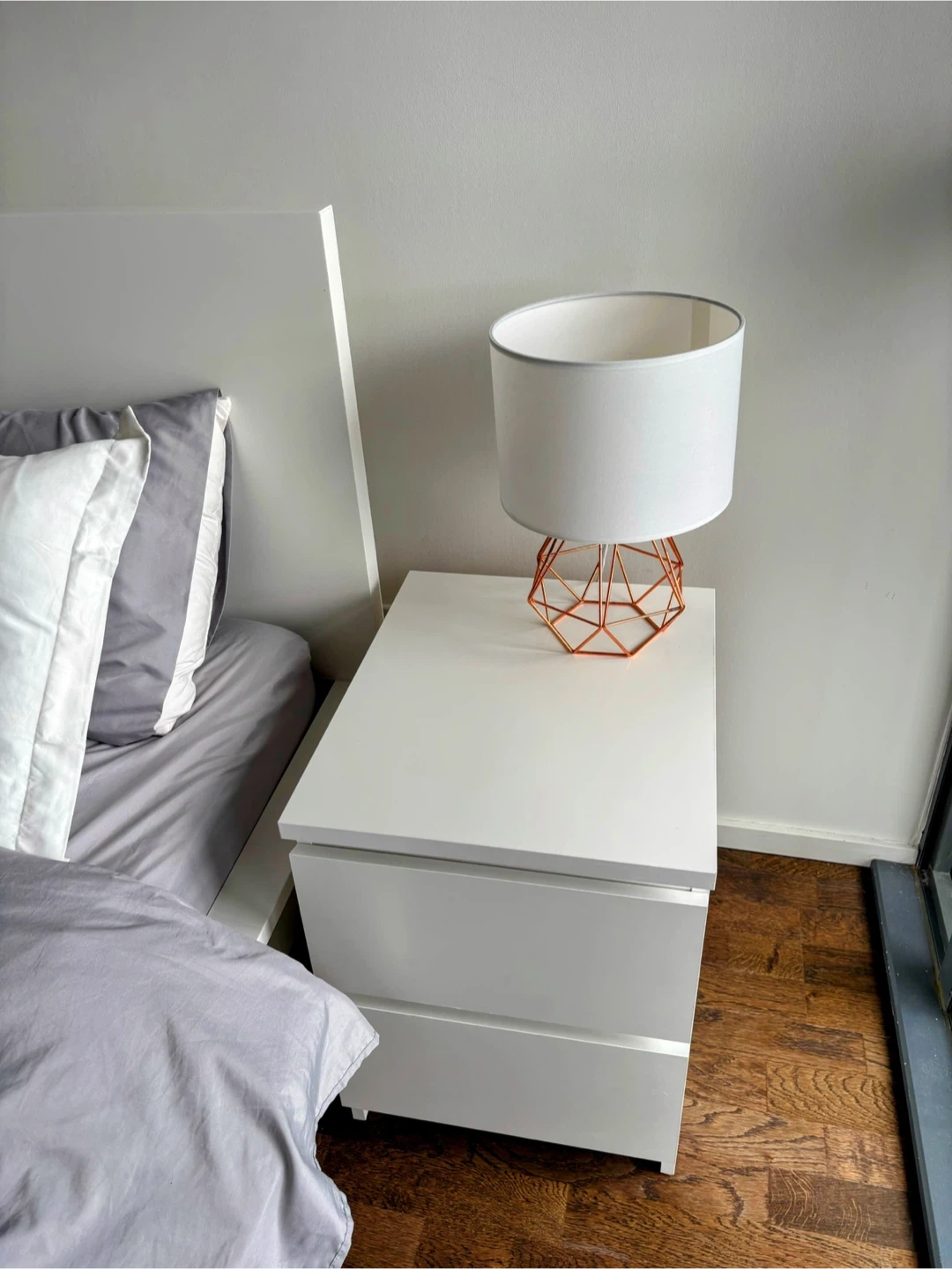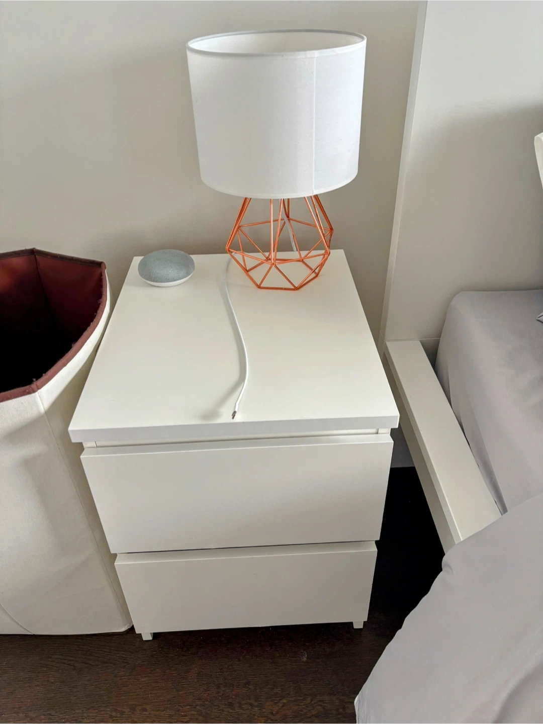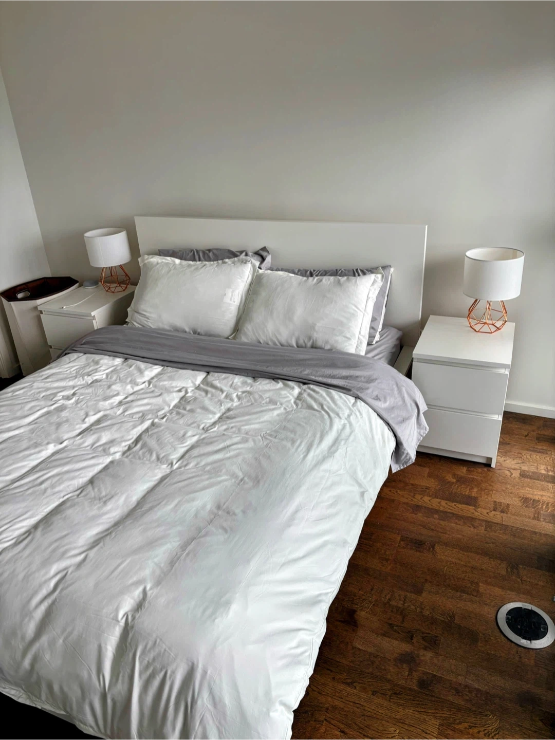 Queen size bedframe and two nightstand set from IKEA Malm Series. Lamps not included. Good condition with no damages. Selling because I’m moving.