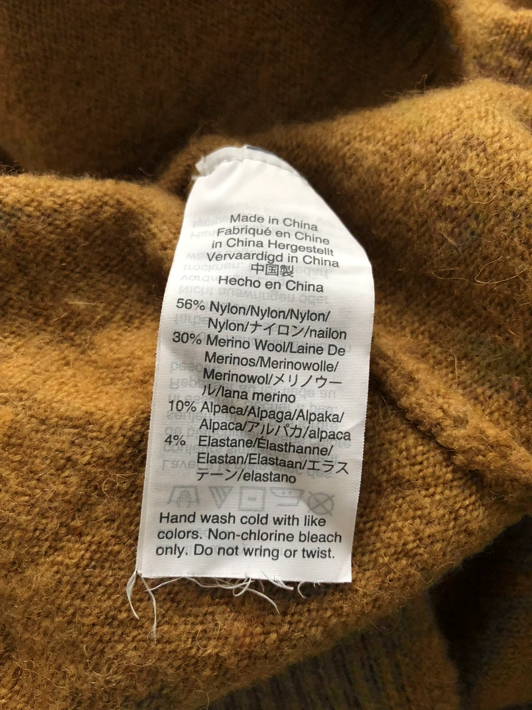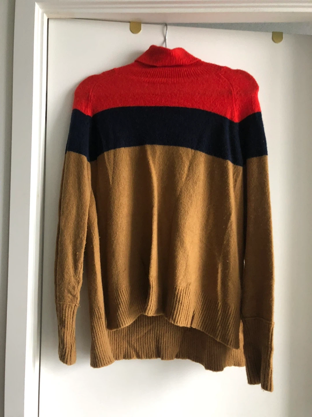 Selling a J.Crew colour block turtleneck sweater. The material is:
