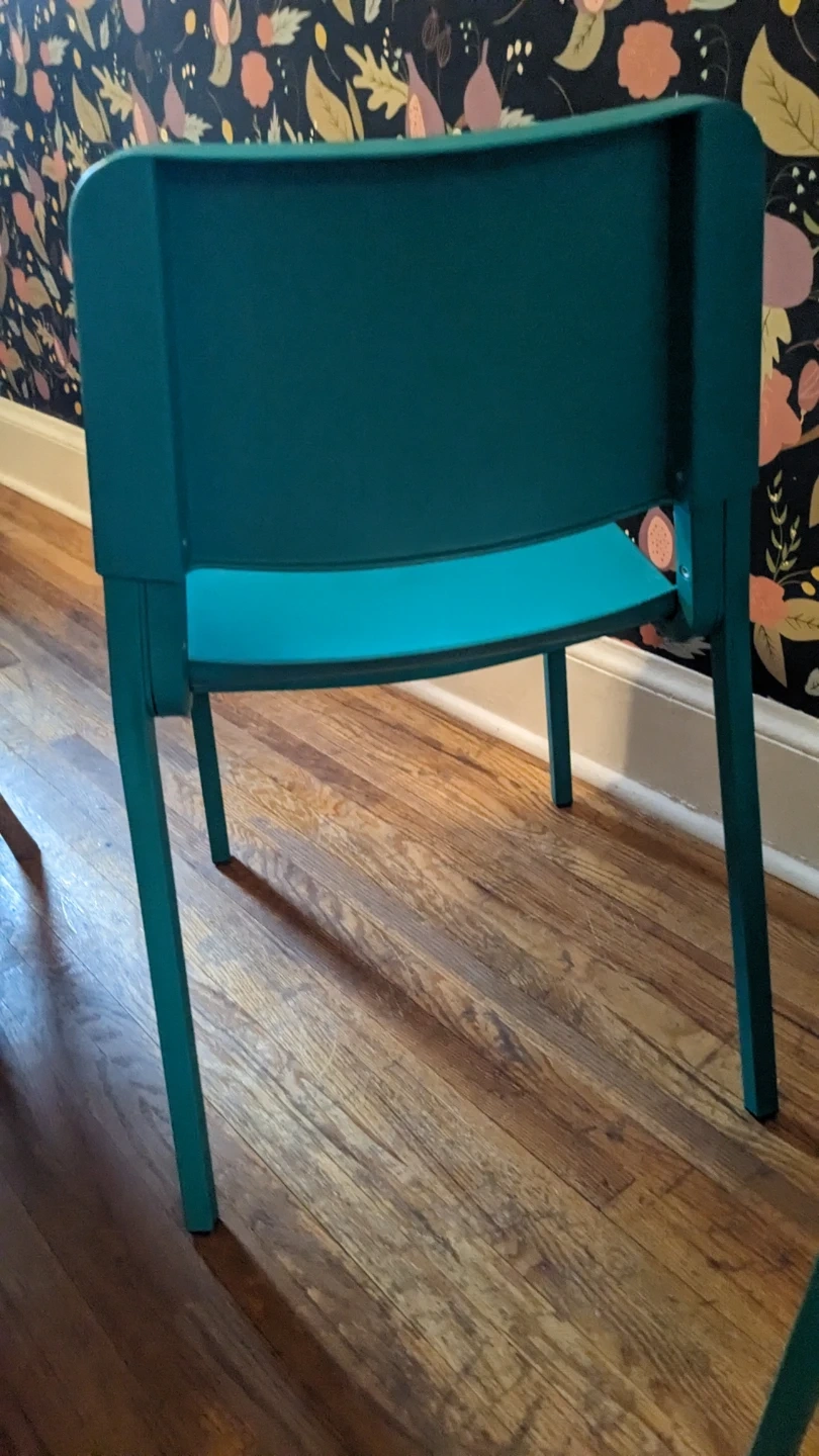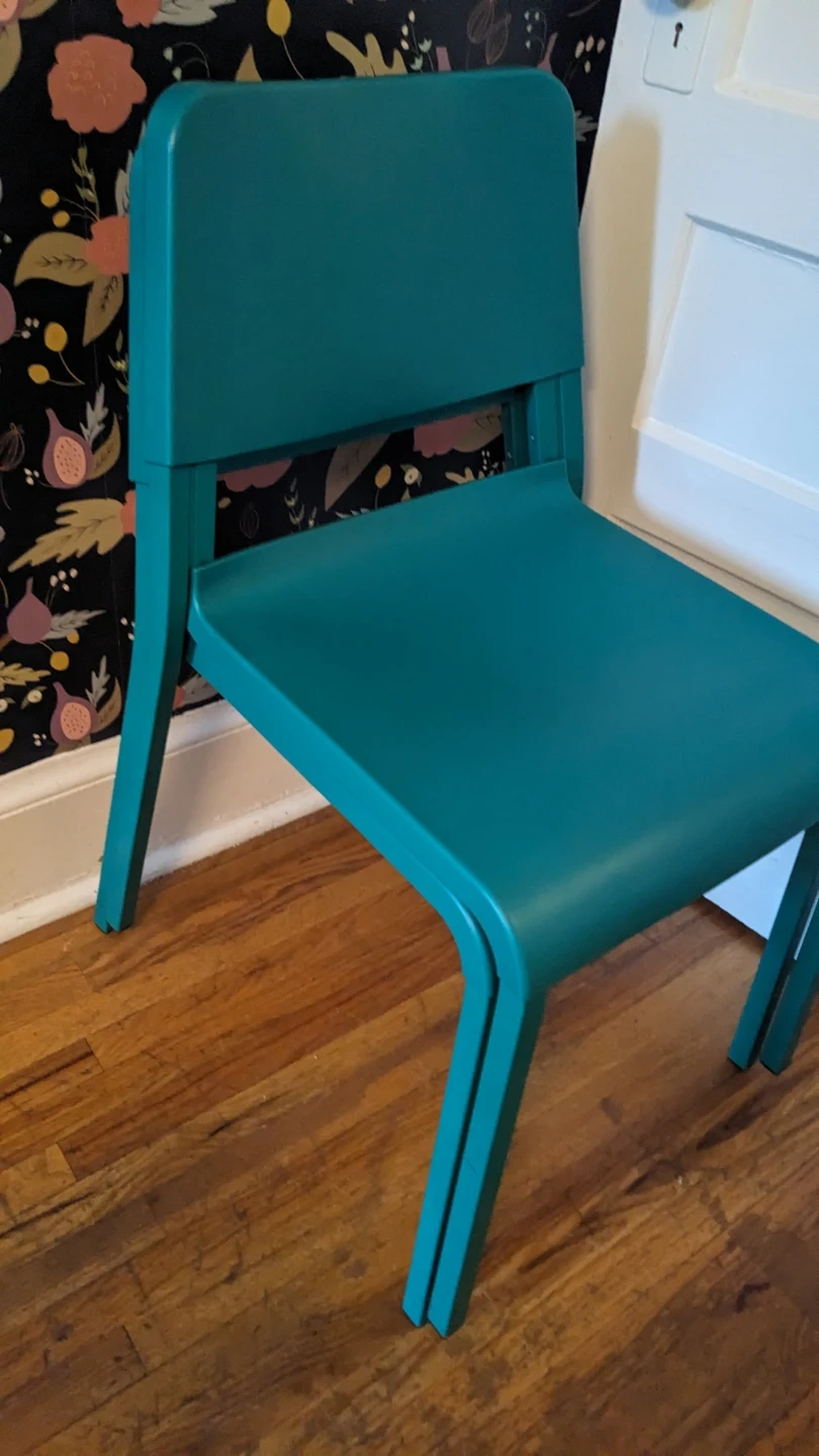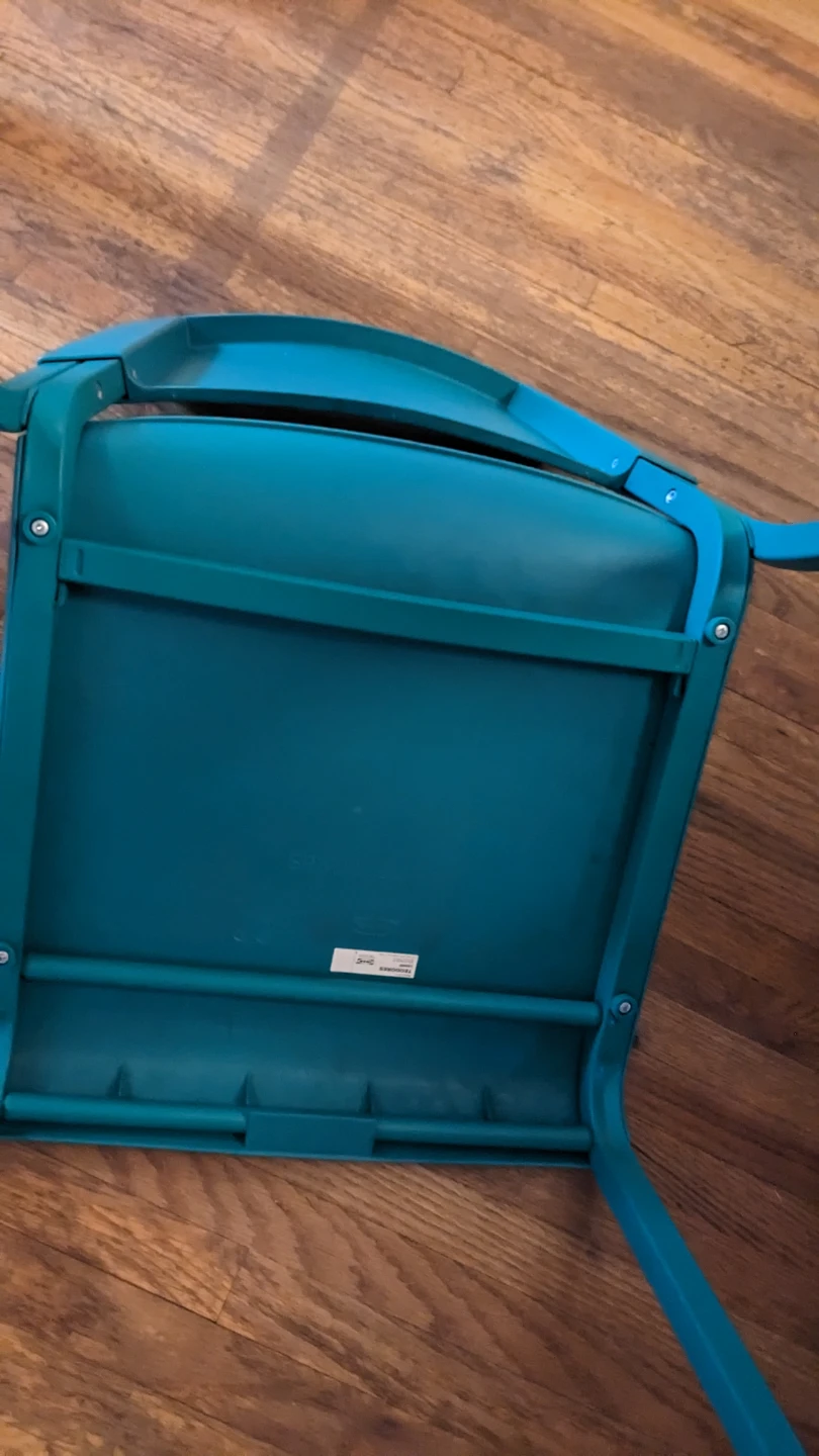 Selling a set of two teal blue chairs! They're in great condition and would look great in any room. They are sturdy and comfortable, perfect for a dining table or desk. Indoor Outdoor.