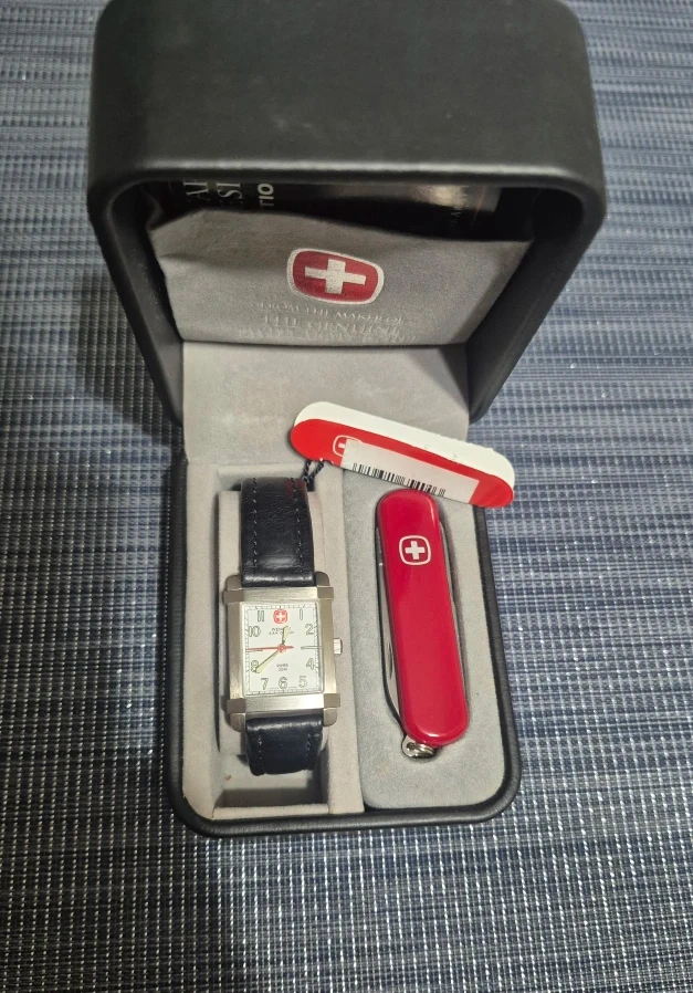 Selling a Wenger watch and Swiss Army knife set. The set includes the watch, a red Swiss Army knife, and the original box. It's a great set for anyone who appreciates quality and functionality!