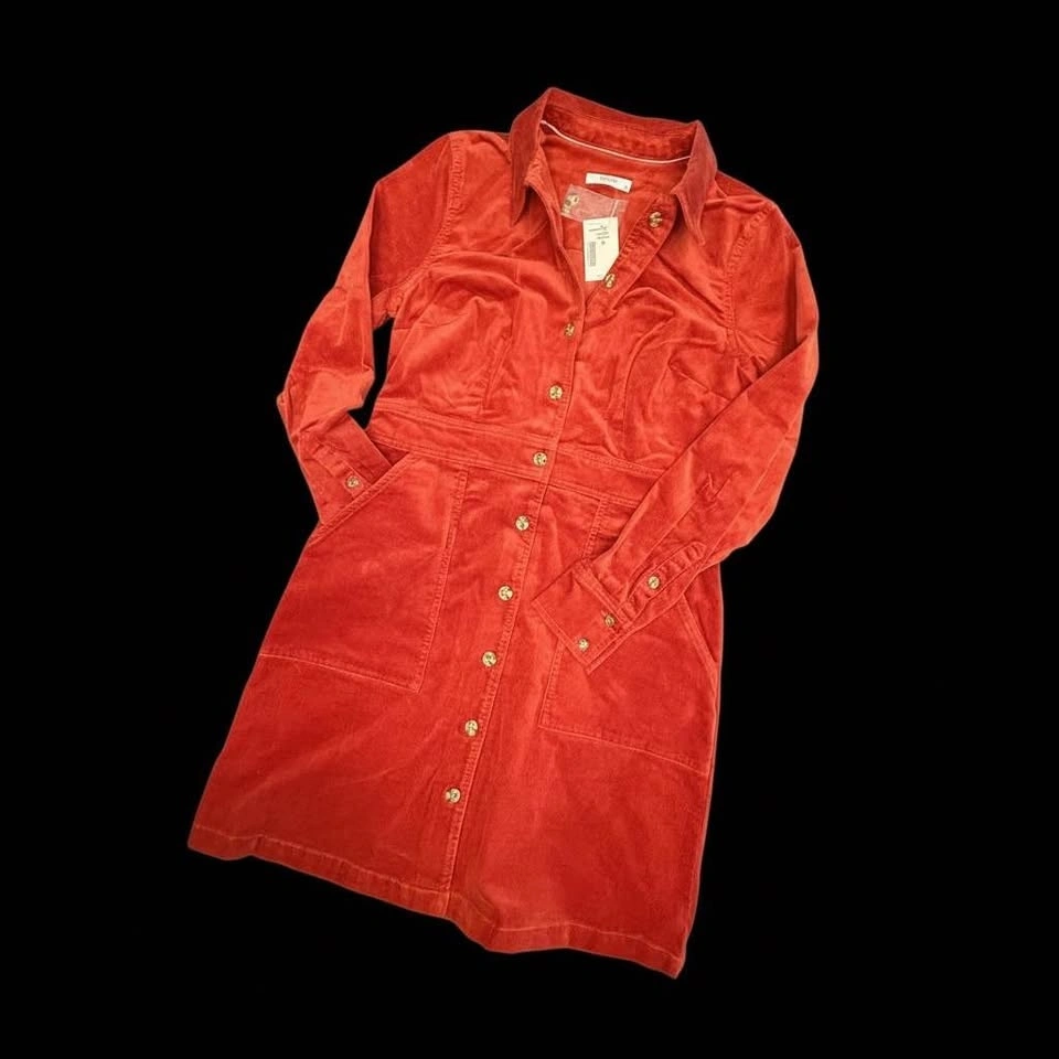 Just in time for Christmas, women's size medium rust coloured corduroy above-the-knee dress.