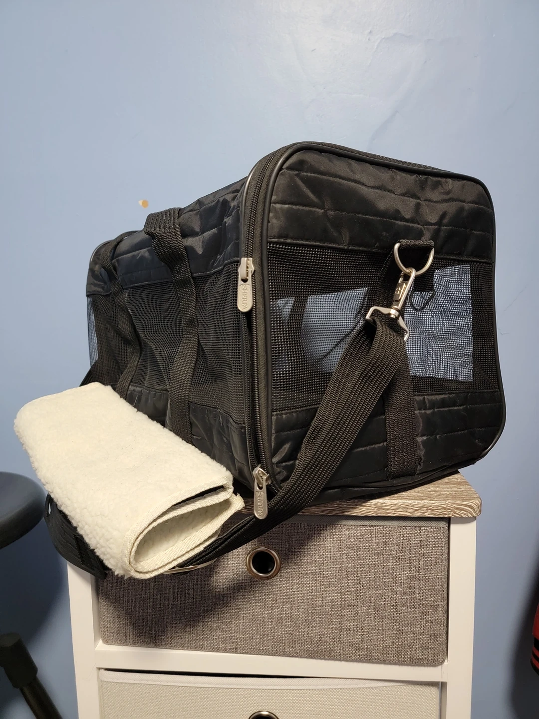 Airline approved pet carrier . Sherpa pet carrier Large. 48.3L x 29.2W x 29.8H Centimeters