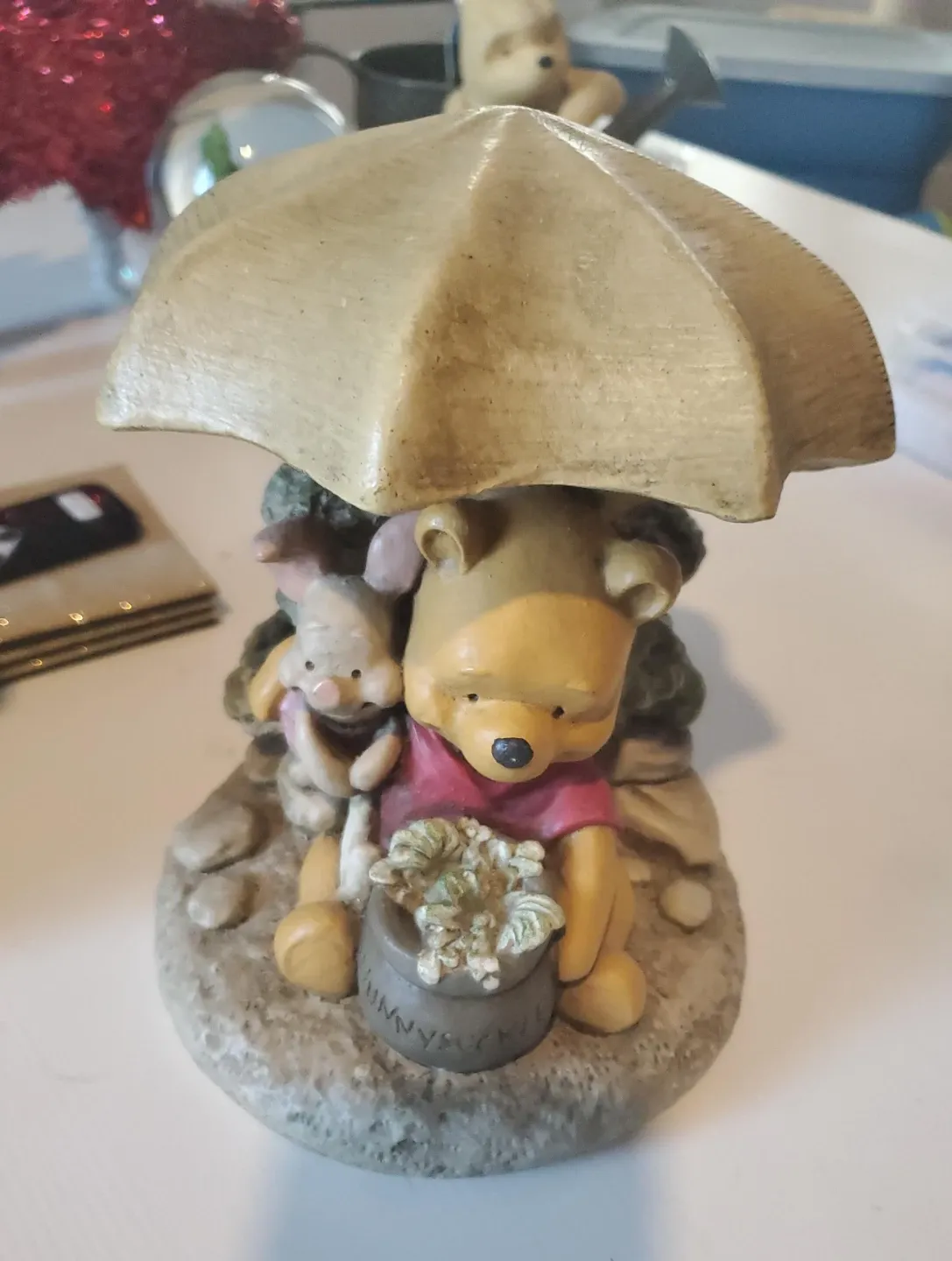 A sweet Winnie the Pooh and Piglet figurine under an umbrella! It's in great shape and ready to brighten up any space