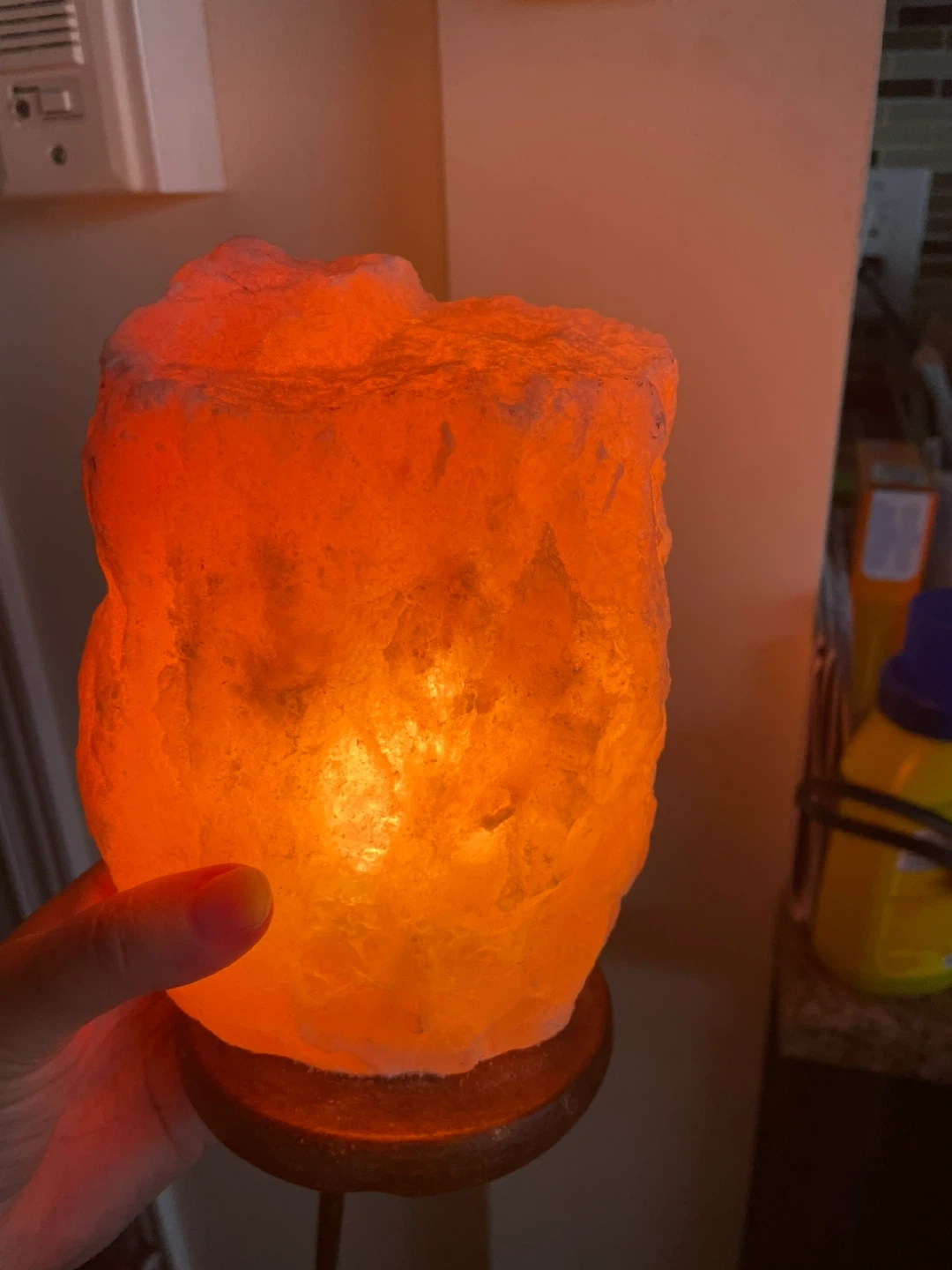 Selling a Himalayan salt lamp! It's in great condition ( just some build up dust on to clean up) and gives off a warm, relaxing glow. Perfect for creating a cozy atmosphere in any room.