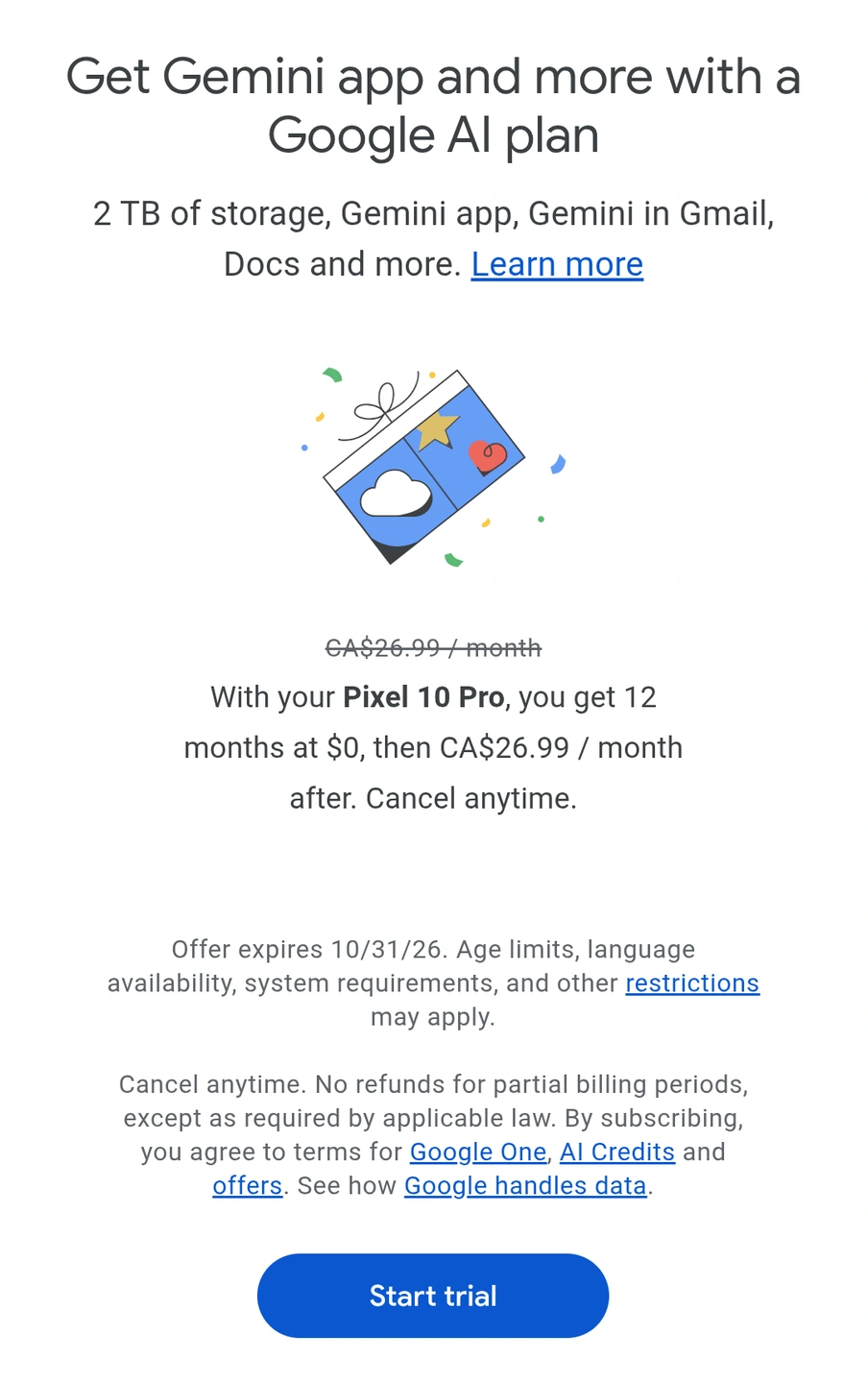 I just bought a Google Pixel 10 Pro which comes with a free 1 year subscription of Google AI Pro.