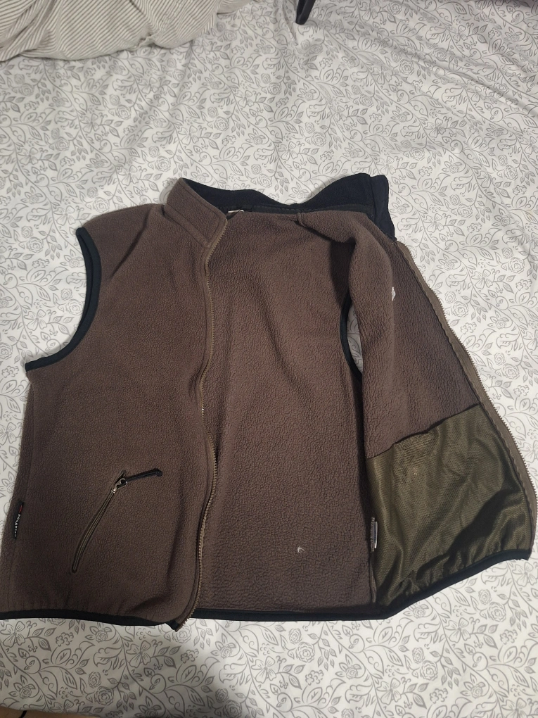 Selling a Patagonia fleece vest in brown. It's in great condition and ready for a new owner! Perfect for layering or wearing on its own during cooler days.