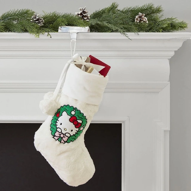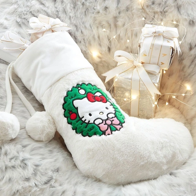 Make it a supercute holiday with this darling Hello Kitty recycled stocking. Ninety-five percent of the fabric is made from recycled plastic bottles. Made from 100% recycled polyester fur. The polyester is made from over 13 recycled plastic bottles. 100% recycled polyester cuff and interior. Imported. Overall: 8.5" wide x 20" high. Top Opening: 8.5" wide. Cuff: 5.5". Top Of Cuff To Heel: 15.5". Heel To Toe: 11". Hanging Loop: 3" long. Weight: 0.5 pounds. Machine wash in cold water; gentle cycle. Tumble dry on low heat. Do not iron. Condition: New. For Sale By: Owner.
