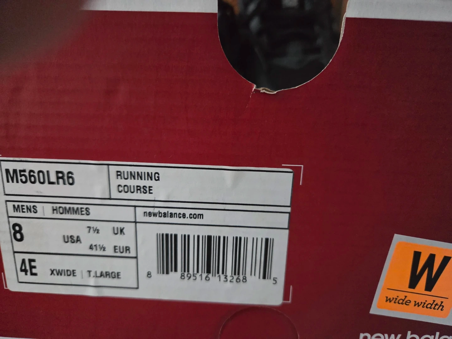 Selling a pair of New Balance M560LR6 running shoes in men's size US 8 and wide width (4E). They come with the original box. Great for running or everyday wear! Never worn.