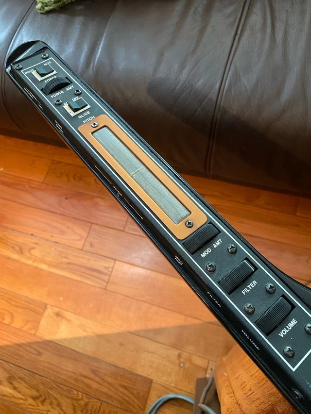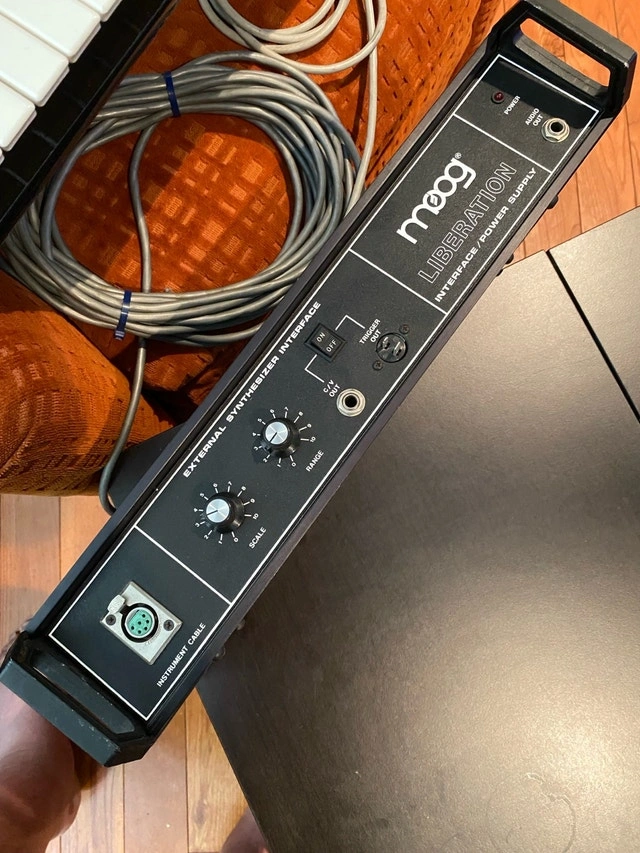 Own a piece of synth history with this vintage iconic Moog Liberation keytar! From what I see online…this is currently the best price for this keyboard model in excellent fully working condition. All keys and controls functioning reliably, Liberation looks amazing, plays even better! Ready for vintage keyboard collection, studio recording session or stage performance! Think Devo, Rick James, Herbie Hancock and Human League One owner Serial #1437 Bought at Lauzon Sound music store (Ottawa) in 1981 Fully restored / serviced electronically and cosmetically by Synths When and Ozley Guitars (lacquering process) in Toronto - June 2025 Included is the original power supply/interface and the original cable. Sorry - No strap or travelling hardcase. SYNTH WHEN TECH NOTES: Confirmed issues with ribbon sensor and intermittent sliders & front panel controls, crackly cable connections. Opened instrument, removed decaying foam from controls, replaced OSC 2 Mix and Filter Cutoff sliders, full controls cleaning, reflowed internal cable harness for ribbon sensor, replaced insulating tape for ribbon sensor, cleaned all internal cables and connectors. Opened pitchbender ribbon, cleaned and reset internal connections. Pitchbender working well now. Full re-painting & lacquering of Liberation body, reassembled synth for full tuning/calibration and play-test. Year 1980 - 1981 Made In United States Number of Keys 44 Keys Key Features: * 44-note keyboard * Ribbon controller * Analog synthesis engine * Modulation controls