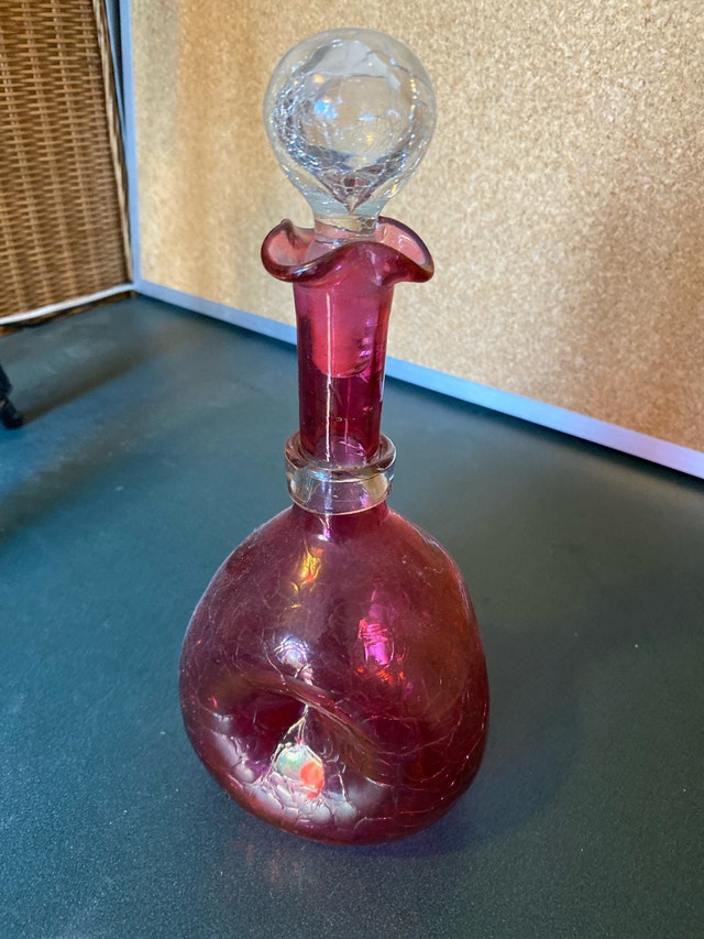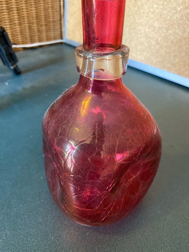 Buy & SellVintage pinch shape decanter bottle cranberry glass crackleVintage pinch shape decanter bottle cranberry glass crackle$30Antique cranberry glass H: 10" More Info: Vintage, Antiques For Sale By: OwnerWHERE TO MEETCheck LocationView MapSELLERverifiedJim PorterParkwoods23818 reviews0 chats·1 favorites·17 viewsSEND CHAT TO SELLERHi Jim Porter! I’m interested in your listing.Hi Jim Porter! I’m interested in your listing.Get the Karrot app to chatSign In to chat