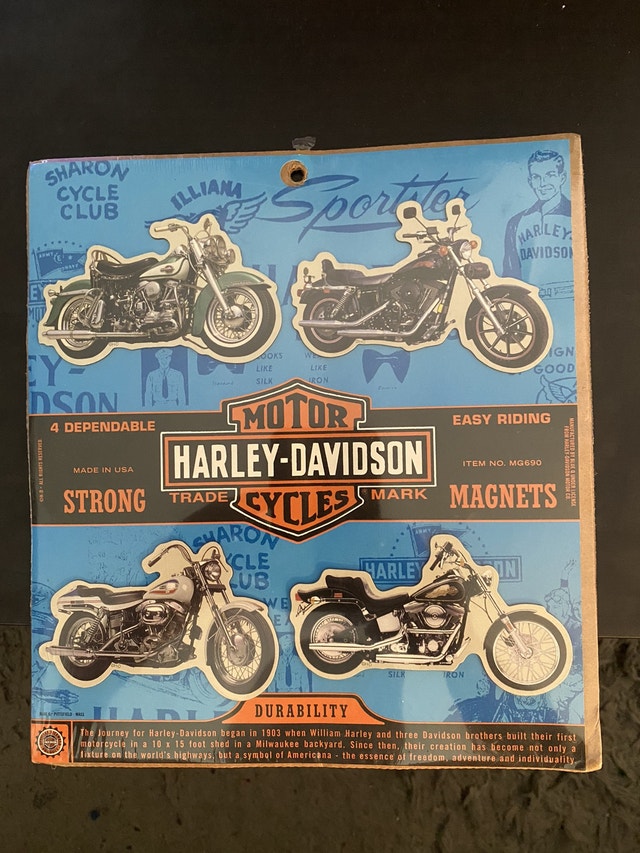Buy & SellHarley-Davidson Motor Cycles 4 fridge magnetsHarley-Davidson Motor Cycles 4 fridge magnets$25Unopened. Circa 1998. Pop Culture Collectibles. Let me know if you're interested!WHERE TO MEETCheck LocationView MapSELLERverifiedJim PorterParkwoods23818 reviews0 chats·1 favorites·12 viewsSEND CHAT TO SELLERHi Jim Porter! I’m interested in your listing.Hi Jim Porter! I’m interested in your listing.Get the Karrot app to chatSign In to chat