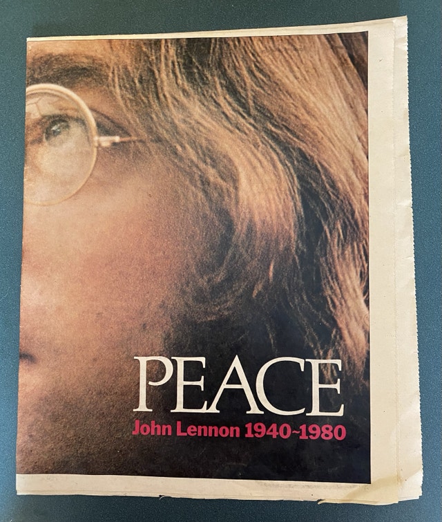 Rare 8 page tribute newspaper supplement from Dec 14, 1980. Lots of photos. Very good condition. No tears, rips, stains. Just expected creases from folds and gentle 45 year aging. Each page 14” x 26”