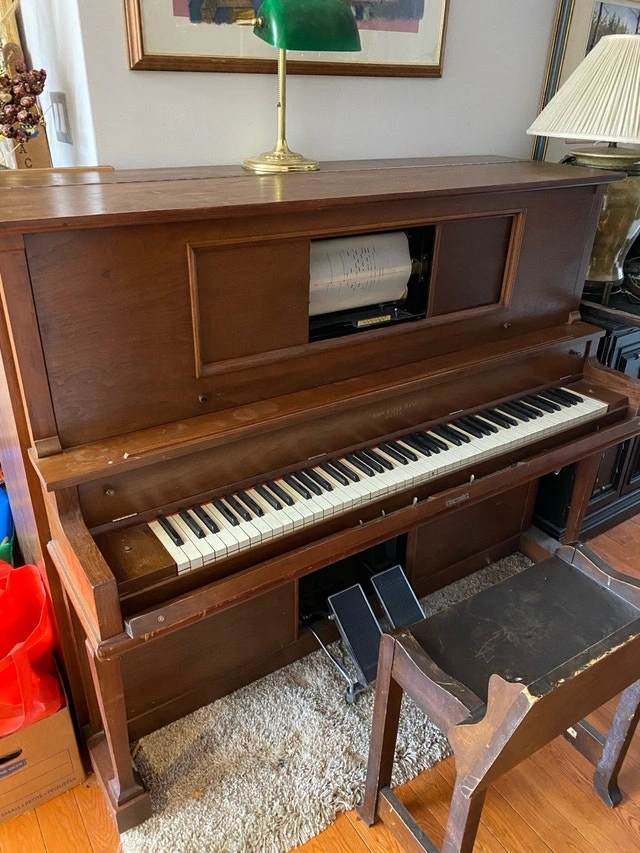 Antique player piano. Built by Ottawa piano manufacturer Raper & Sons 1900. Restoration in early 1980s by Do Re Mi Pianos (Ottawa). Working well. Comes with dozens of piano rolls.