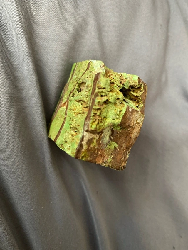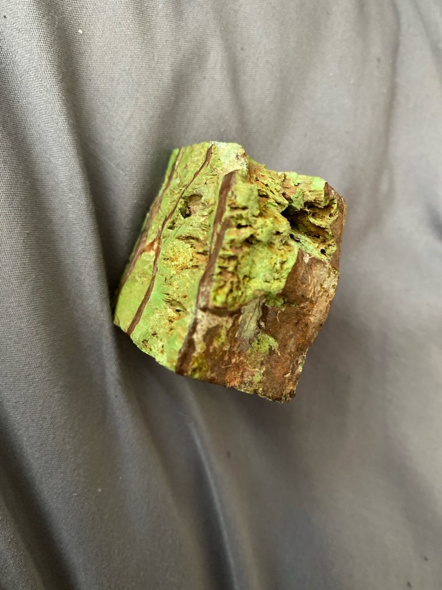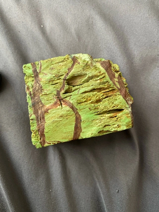 This rare 146g Gaspeite specimen has distinct brown veining, making it a standout addition to any mineral collection. Collected 1977 from Cornell geologist - the year of discovery. 146.9 grams. L 2” x W 1.75” x H 1” It is in good, used condition, showing natural wear that adds to its character. * Weight: 146 grams * Colour: Green with brown veining * Origin: Gaspe Peninsula, Quebec. For Sale By: Owner