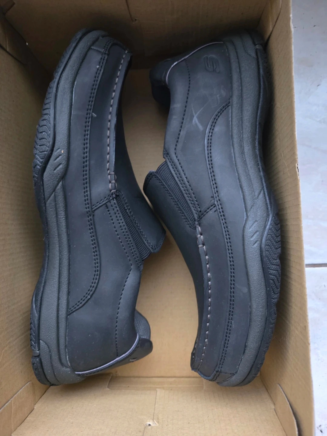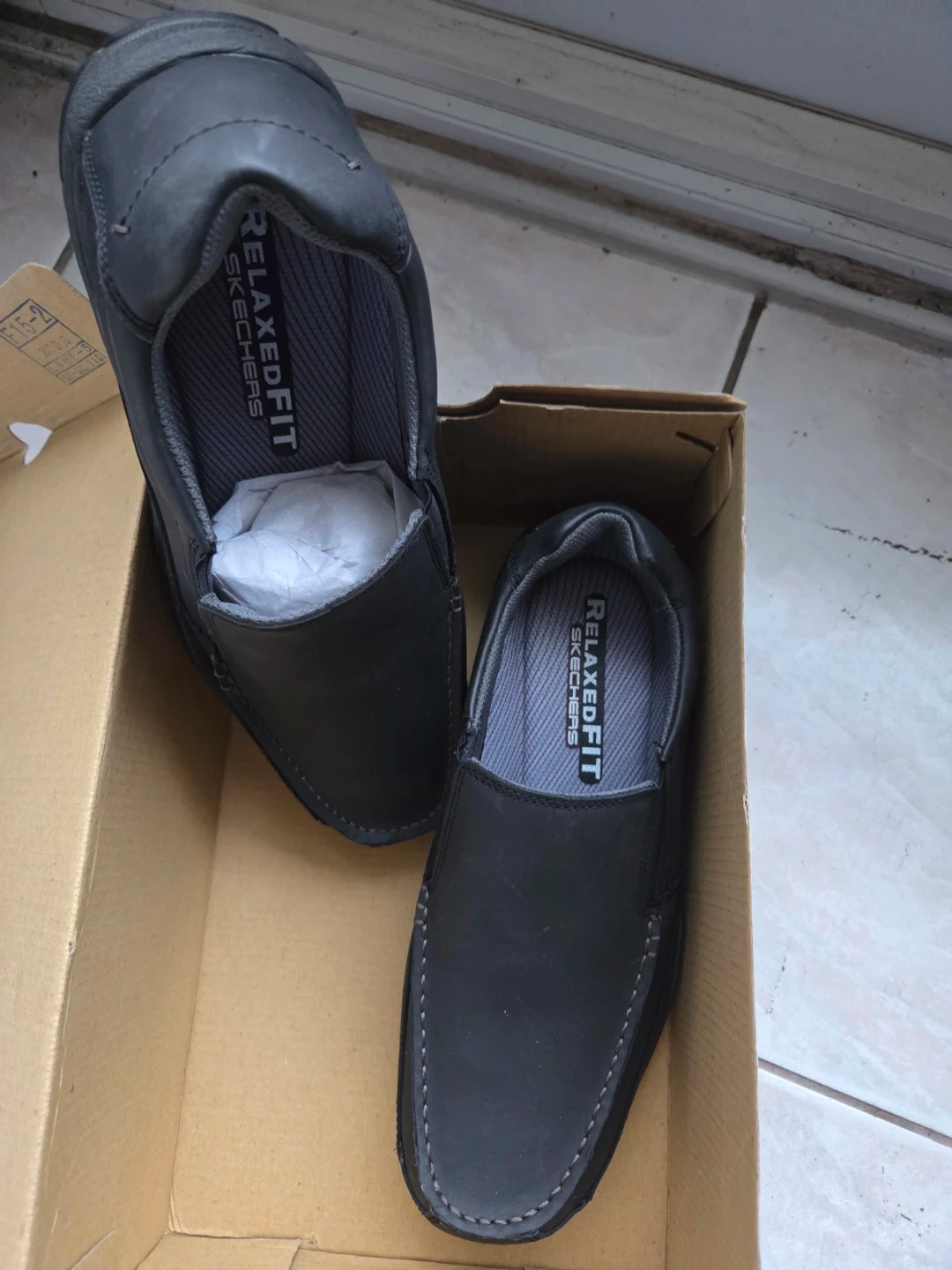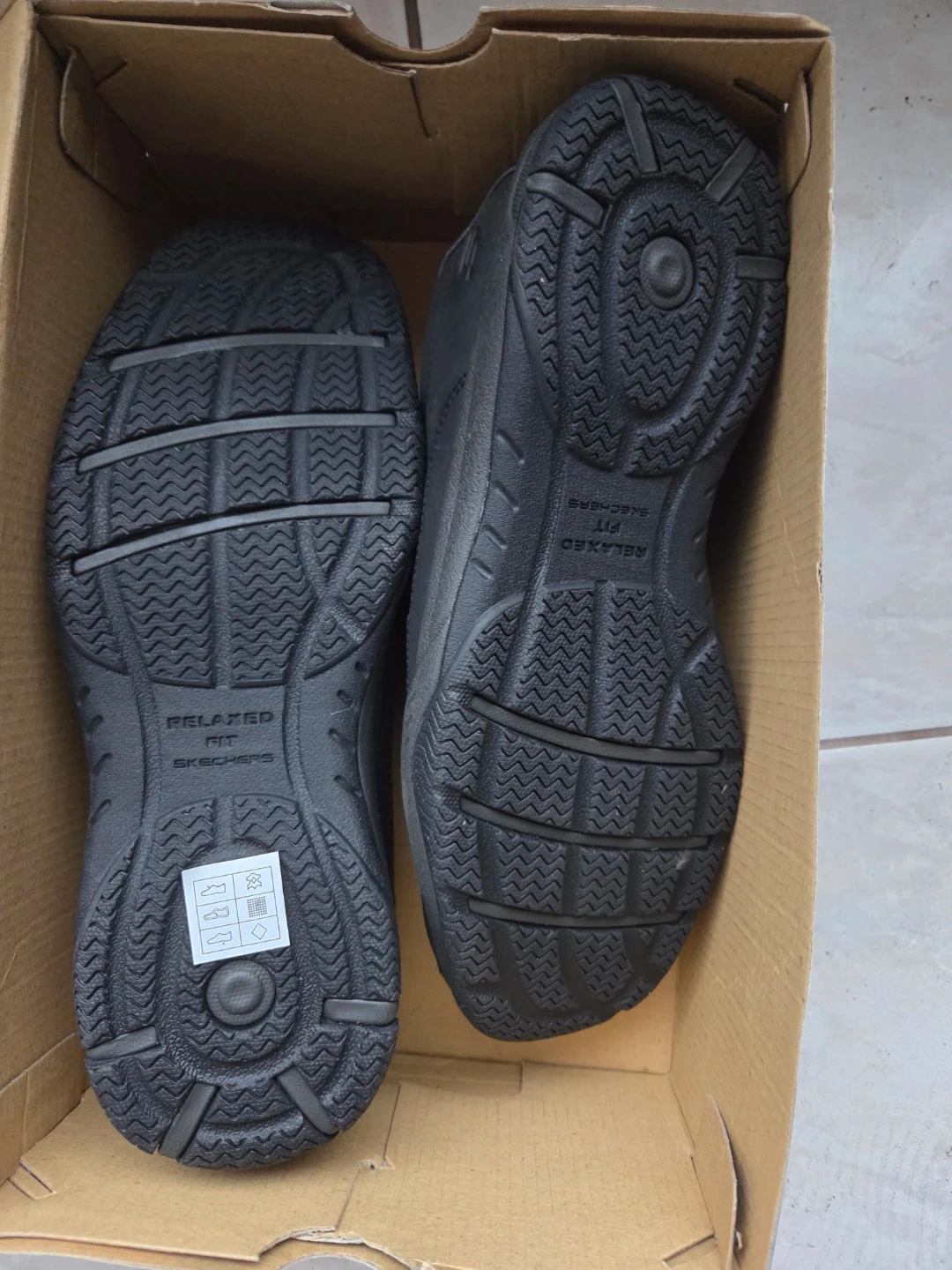 Selling a pair of Skechers Relaxed Fit Nequel shoes in black, size 8 for men. These are brand new and come with the original box. Originally bought for $85. They're a relaxed fit, perfect for everyday comfort
