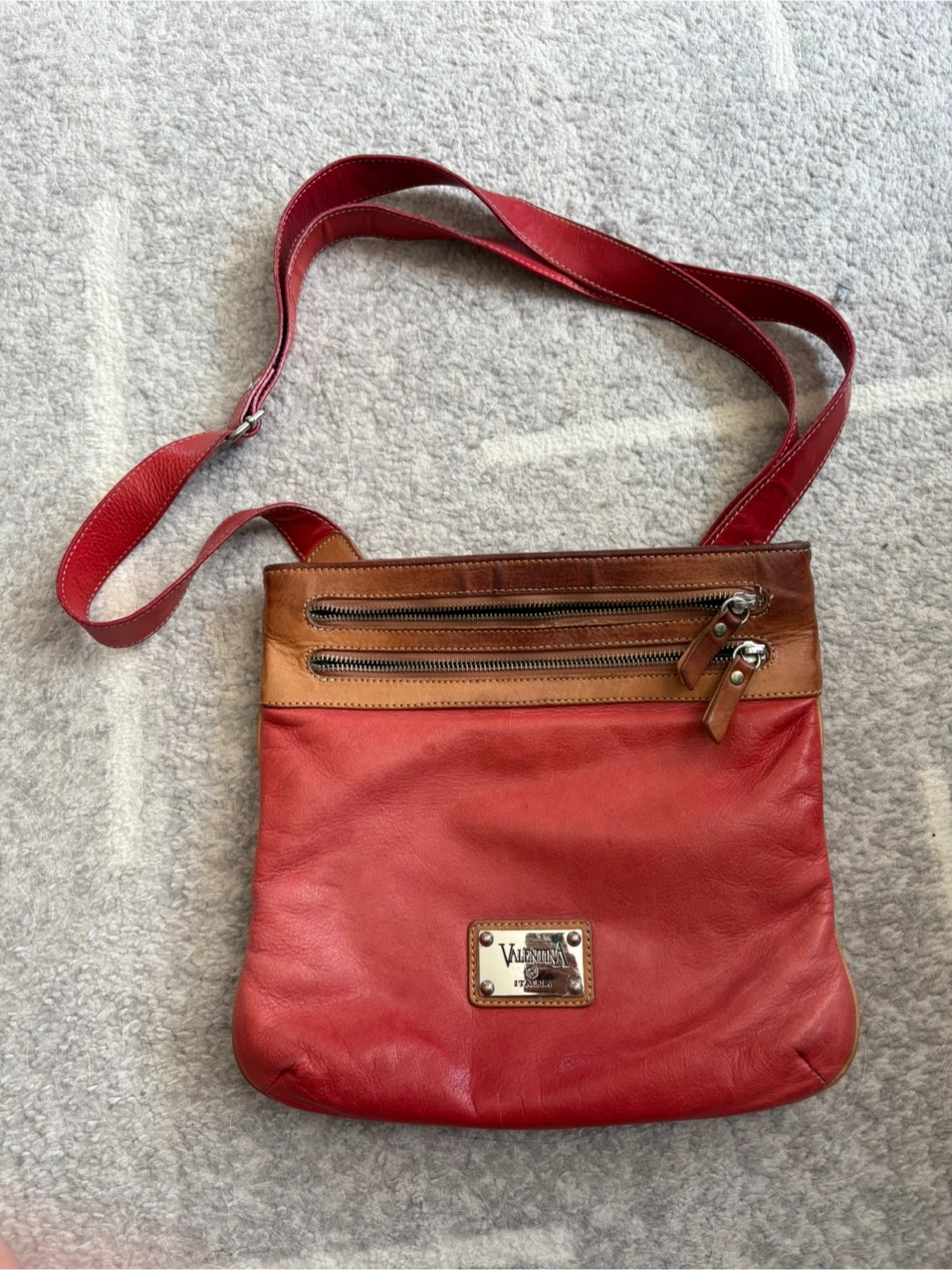 Selling a Valextra crossbody bag in a lovely red and brown leather. It has a few zippered compartments and is in great condition. Perfect for everyday use!