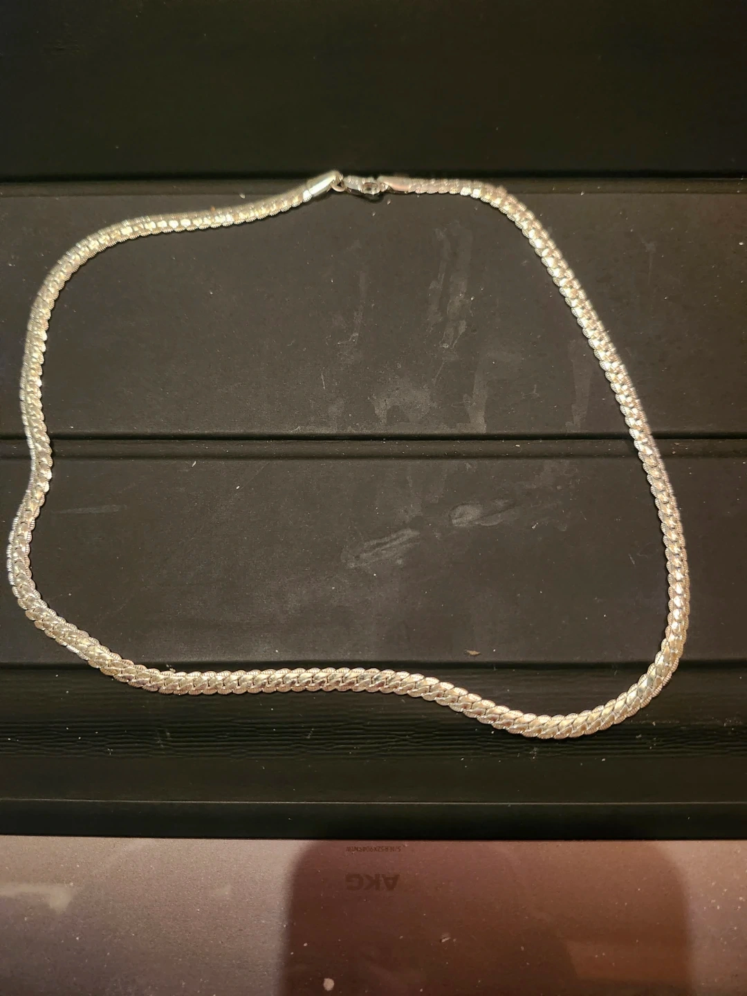 Selling a sterling silver chain necklace. It's marked with 925, which indicates its silver purity. A classic and stylish accessory to add to your collection!