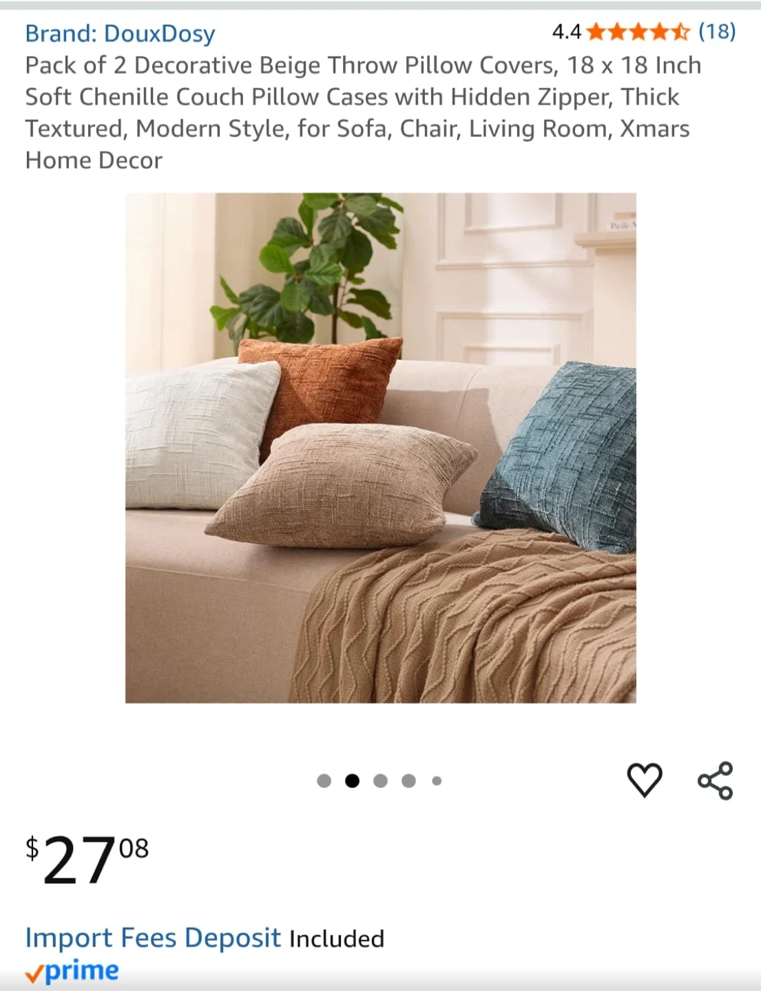 DouxDosy Beige Throw Pillow Covers (18x18 in)