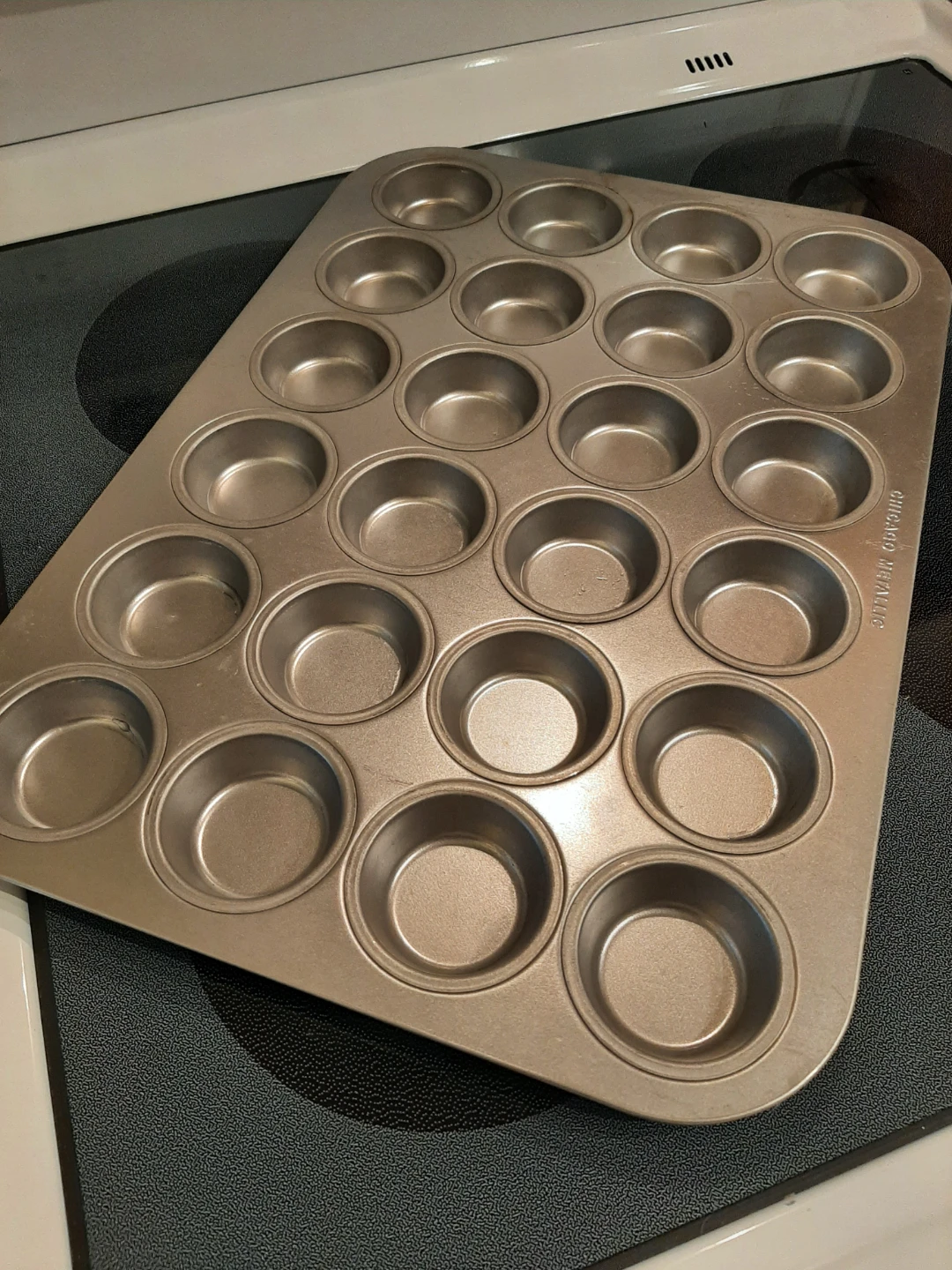 Selling a Chicago Metallic 24-cup muffin pan. Muffin cups are 2" in diameter and 3/4" deep. It's in great shape and ready for your mini muffin baking adventures!
