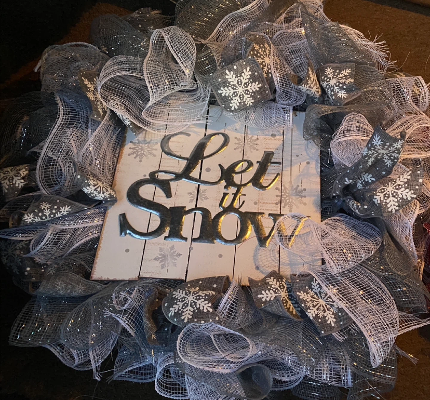 Festive Christmas wreath to add some holiday cheer to your home! Features a 'Let it Snow' design. Perfect for your front door or as part of your holiday decorations