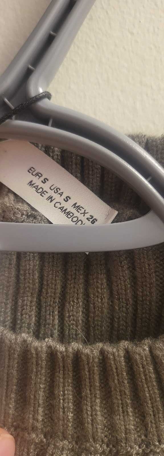 This Zara knit top features a stylish, fitted design with short sleeves and a comfortable, ribbed texture, perfect for adding a touch of modern flair to any outfit. It is in new condition with tags. * Brand: Zara * Size: S * Colour: Olive If the ad is still up, it's still available!
