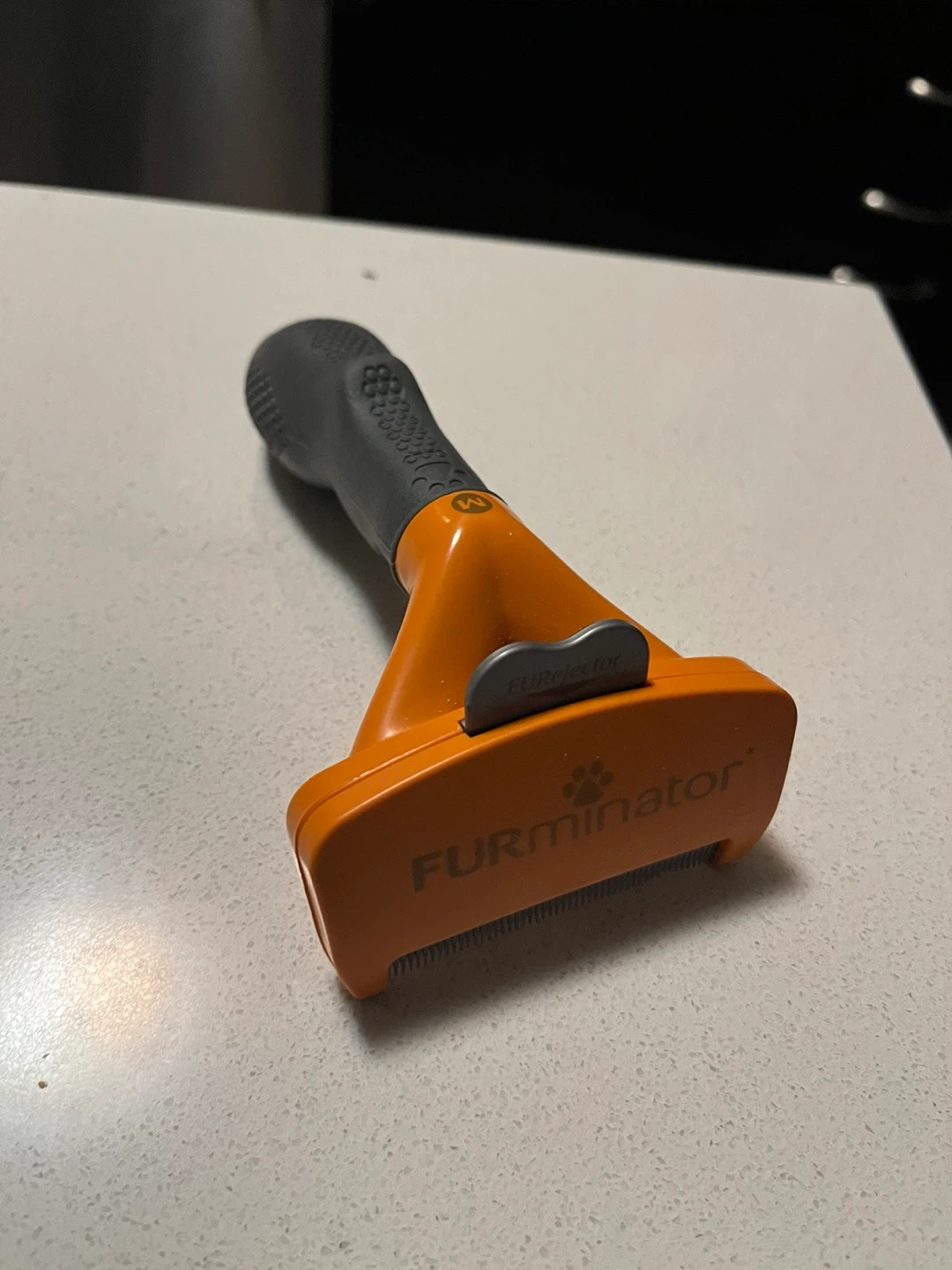 I'm selling a FURminator Deshedding Tool for dogs. It's in great condition and ready to help keep your furry friend's coat healthy and your home fur-free! The tool measures approximately 6.2" x 3.2".