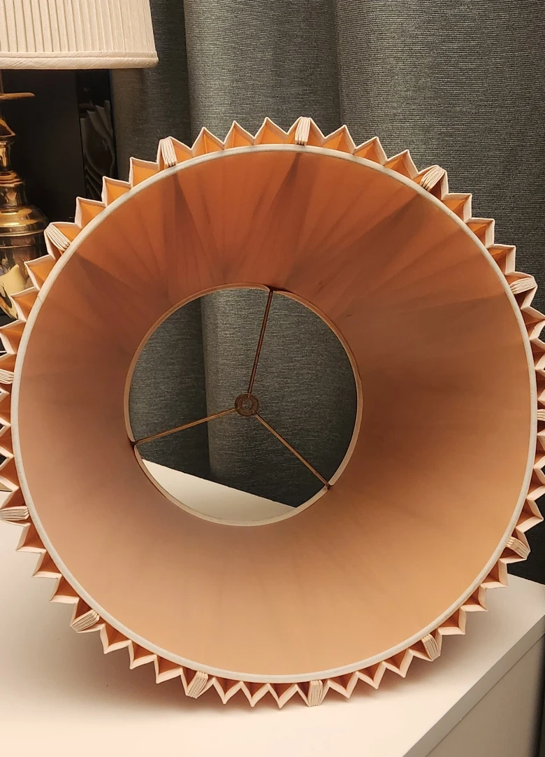 Selling a pleated lamp shade in a neutral beige colour. It's in great shape and would look lovely in any room! Comes with a black carrying bag.
